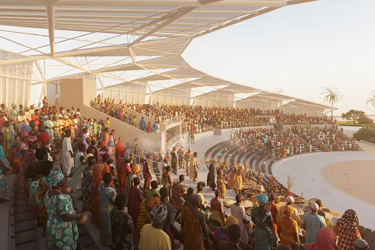 Porto Novo Cultural Arena building Benin, SIRAT development in west Africa, Architect design images
