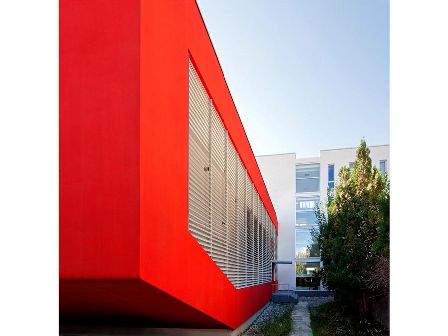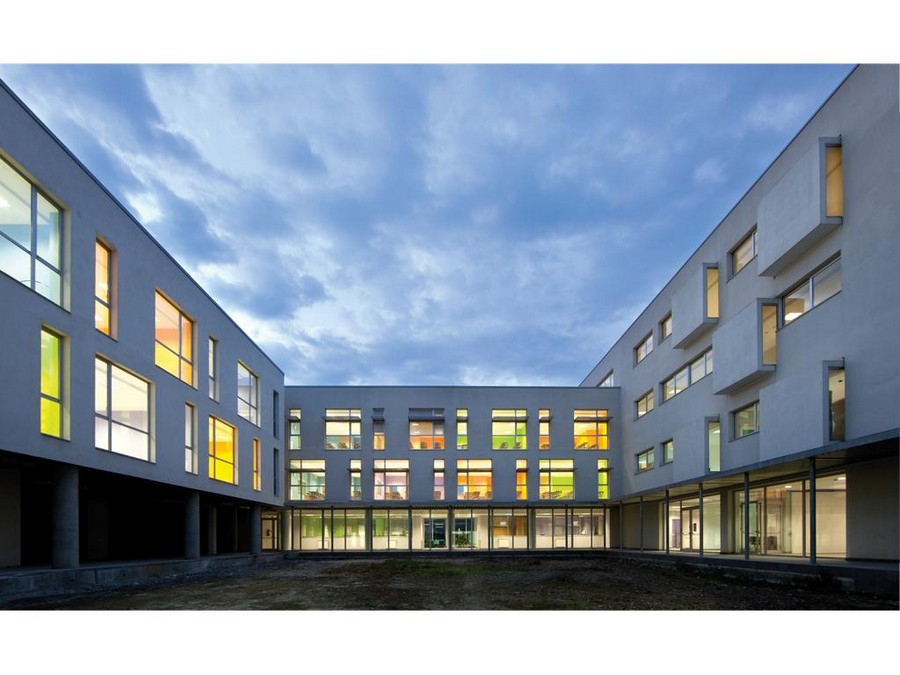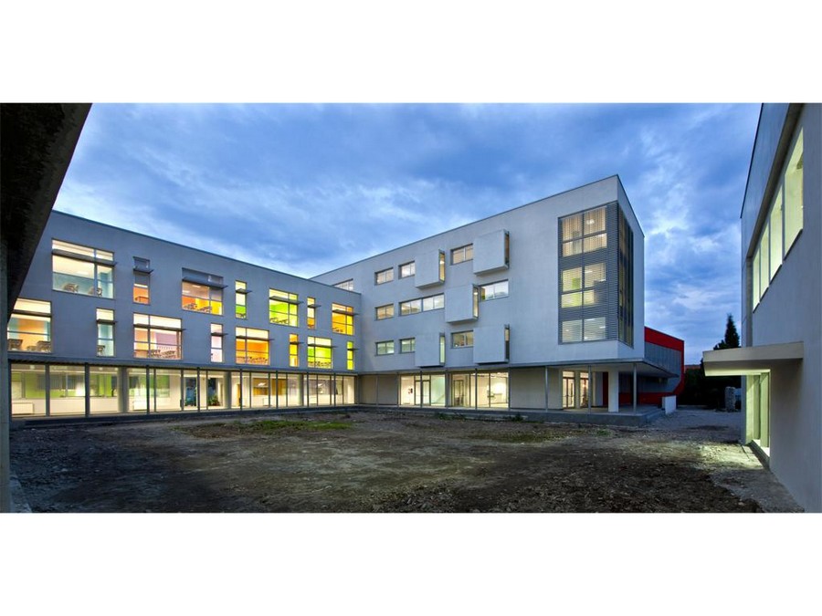 The new building is part of the second batch plant lies in a plane in north-south, east-west and splits into squares. In the design phase was expected that underground chapel under construction has been placed on the outside, placed under the building west of the “semi-open court”. About sustainable aspect of the work were used low-emissivity glass, materials at zero km and special systems of thermal insulation.