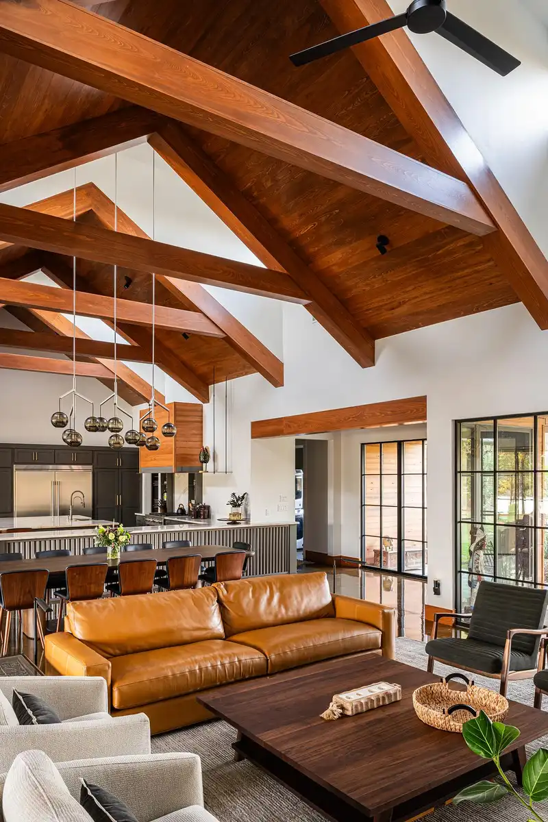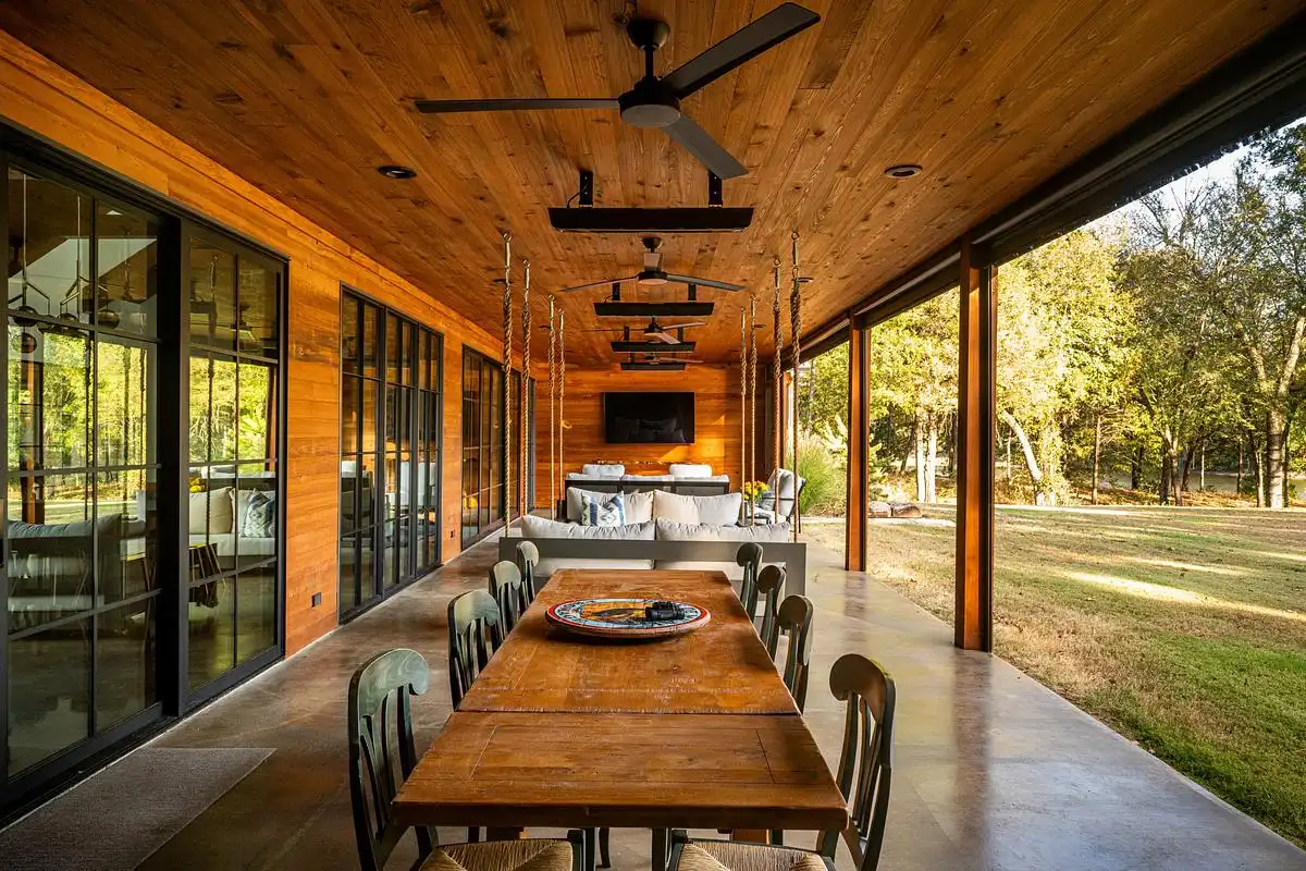 At the heart of the home is a single, generous living and gathering space designed for shared meals, celebrations, and everyday togetherness, surrounded by more modest sleeping and living quarters that support privacy without separation. This hierarchy reflects the spirit of East Texas ranch living: communal at its core, rooted in nature, and deeply connected to tradition, hospitality, and family life.