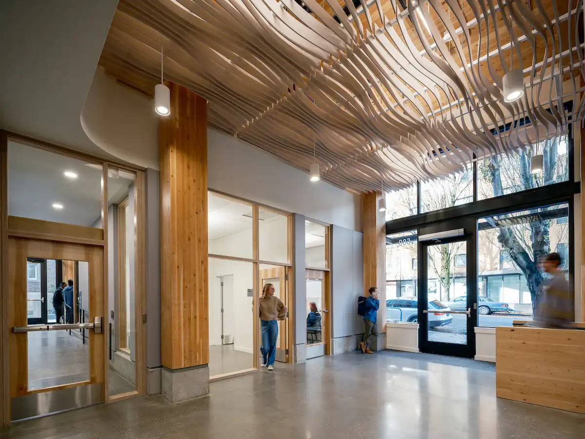 • The innovative high-rise merges sustainable, biophilic living with trauma-informed design, bringing natural materials, natural light, and art to a development serving our most vulnerable community members