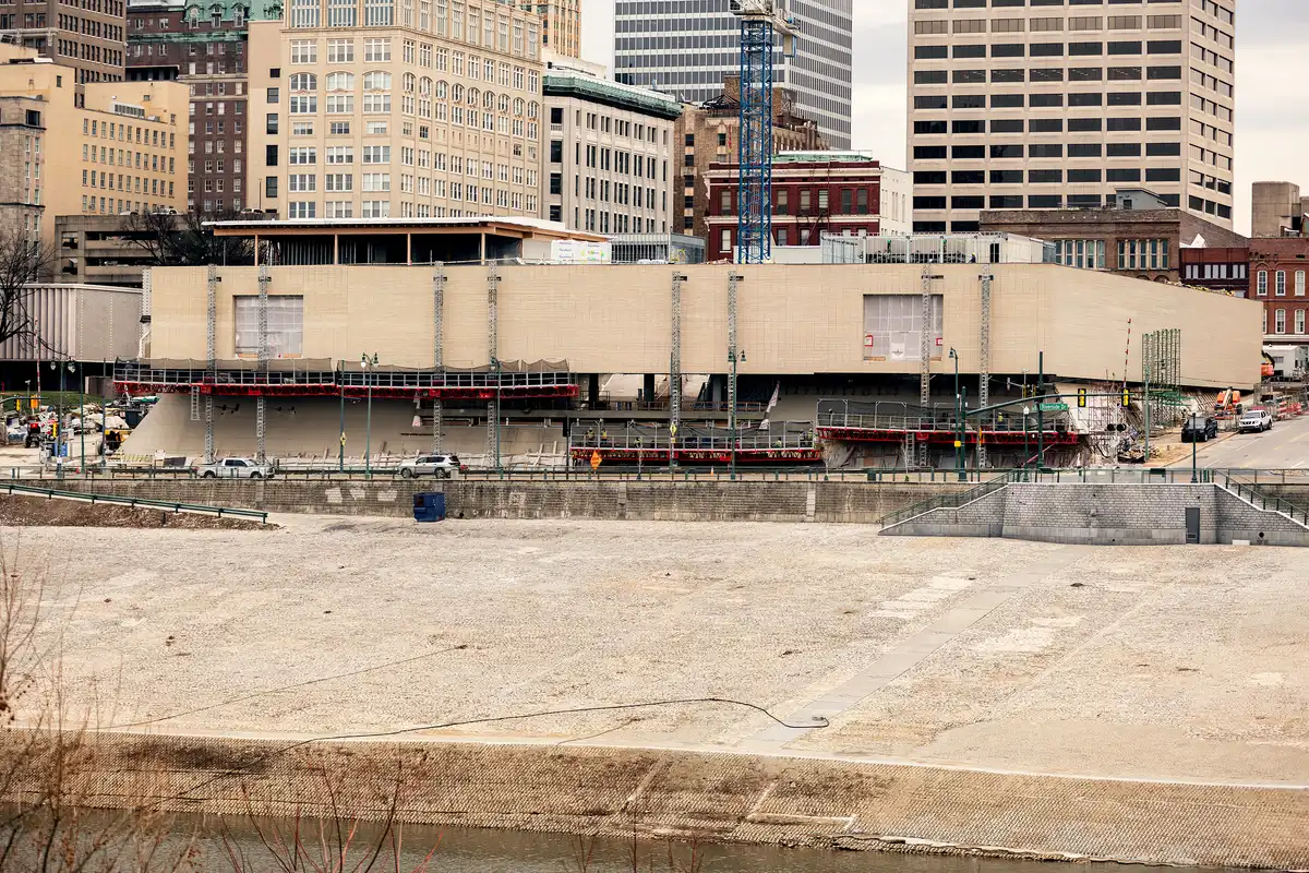 Ascan Mergenthaler, Senior Partner, Herzog & de Meuron, stated, “The rapid progress of the new museum’s construction is apparent, and it is incredibly rewarding to see the many spaces we envisioned coming to life. The timber-beamed galleries, the welcoming entrance lobby along Front Street, the expansive courtyard with its connection to the river, and the spectacular roof terrace overlooking the Mississippi floodplain are all taking shape. Already, the civic nature of the building is tangible, and one can sense the positive impact it will have on Memphis.”