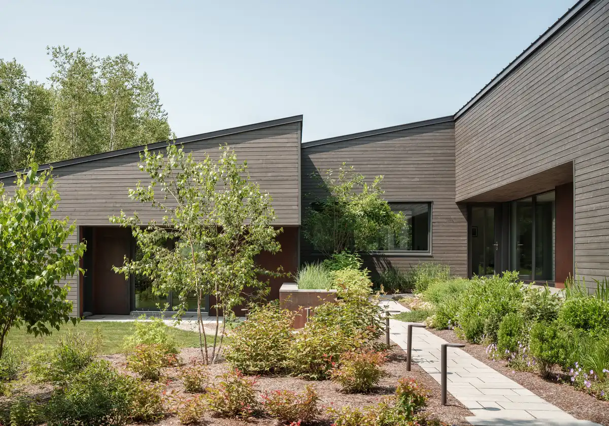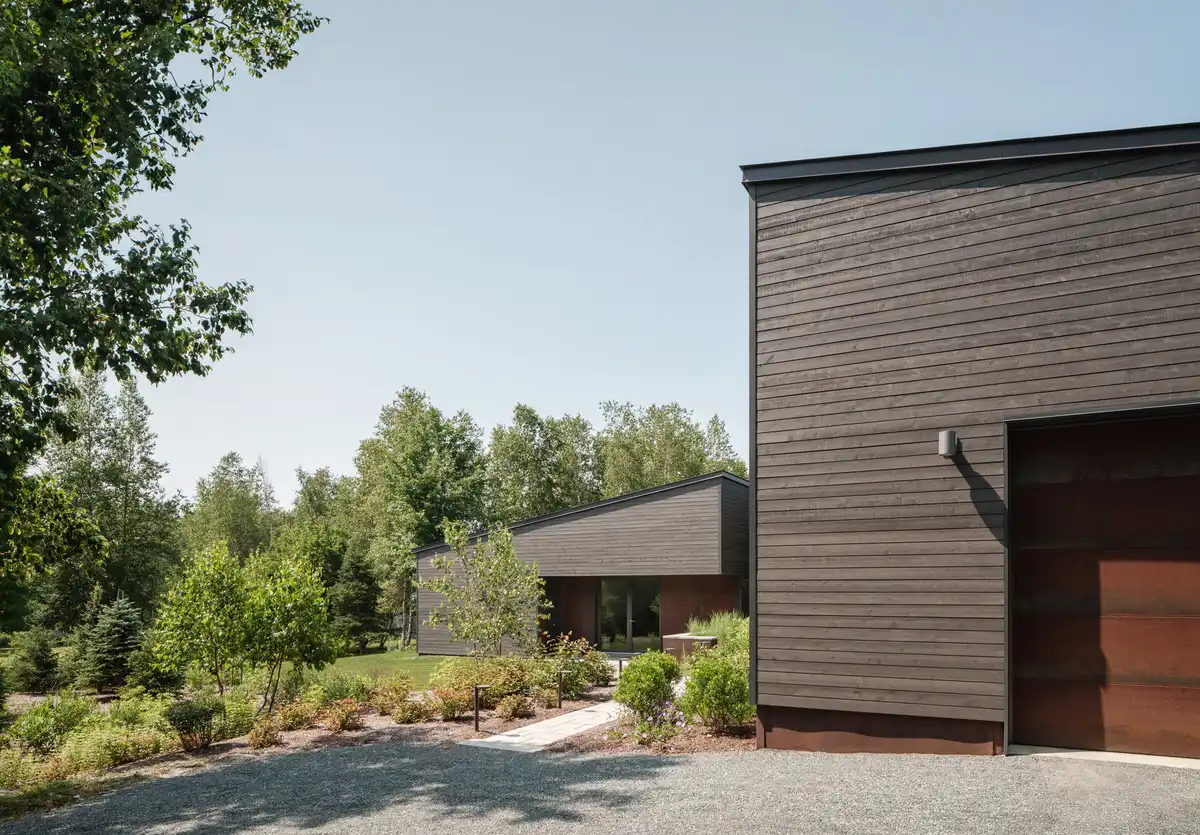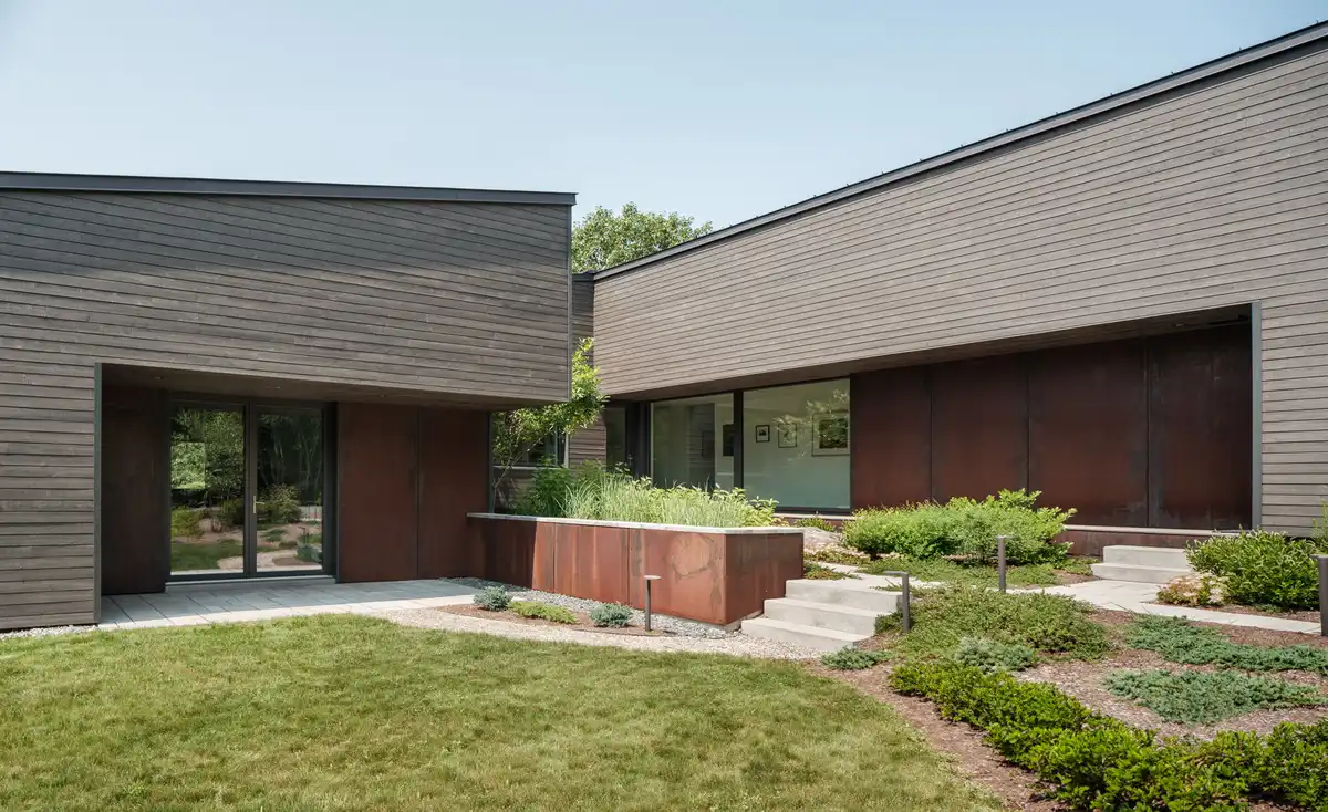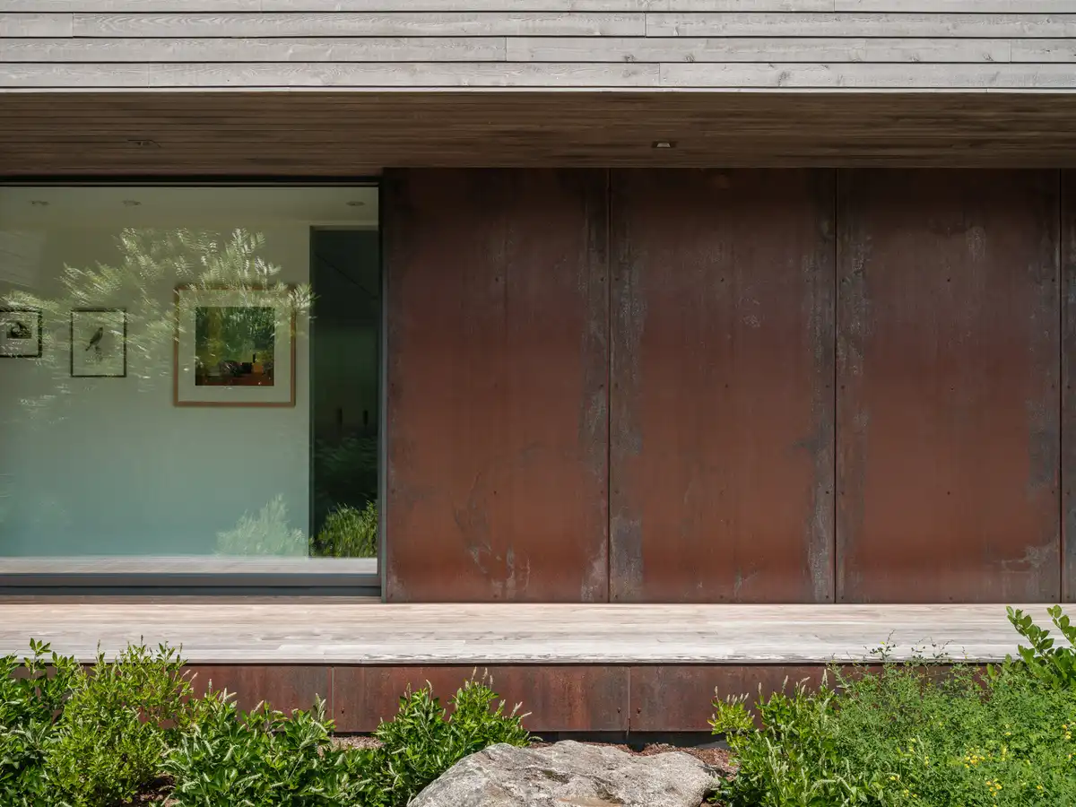 Exterior Siding: Corten Steel & Juste du Pin cedar shiplap in color Perie Noire