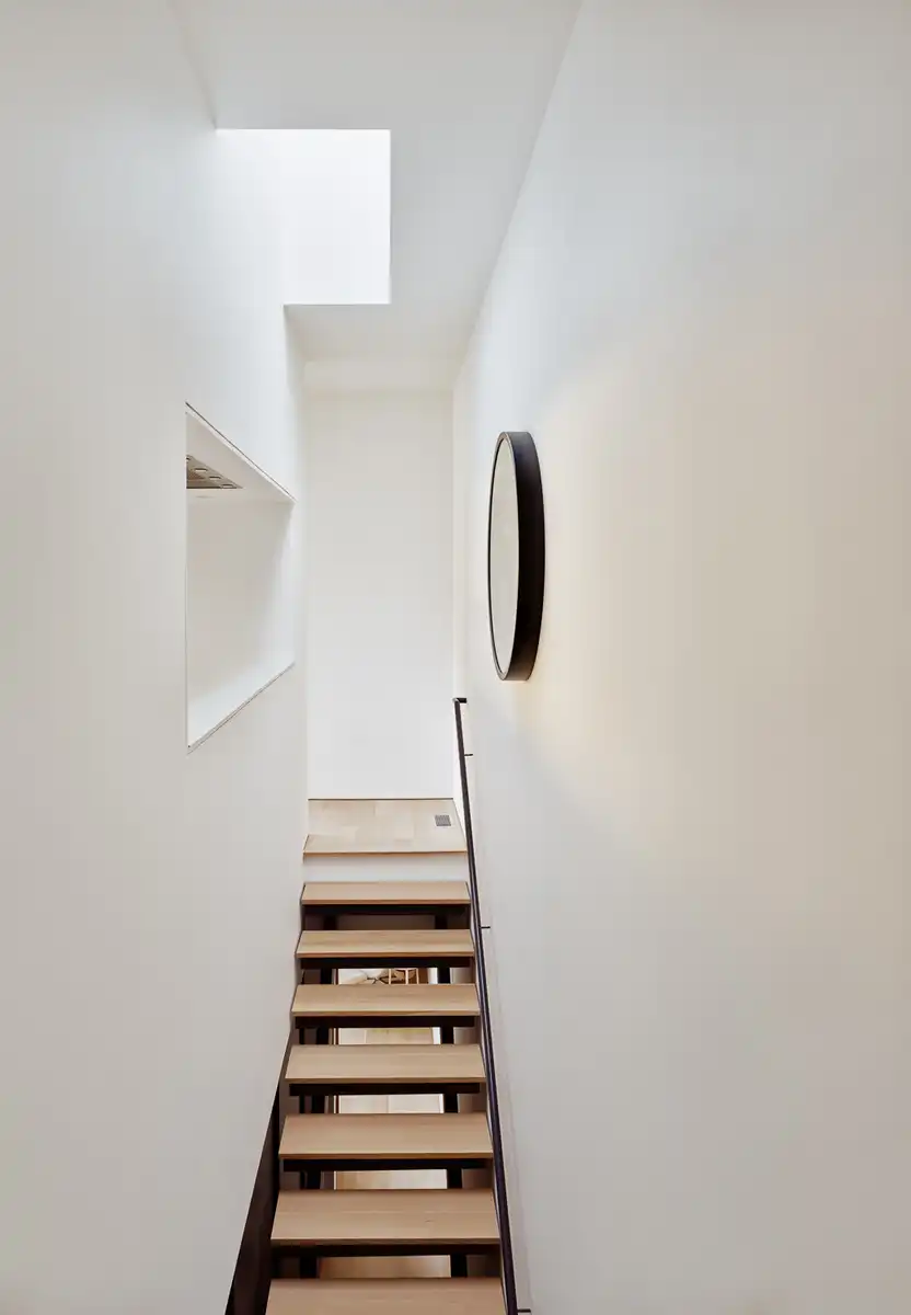 Light from multiple sources tempers the character of rooms over the course of the day, and cross-ventilation conditions the atmosphere of the interiors. Operable windows to promote cross ventilation, glazing strategies to optimize daylight and protect against excess heat gain, and filtered indoor air is present throughout the house.