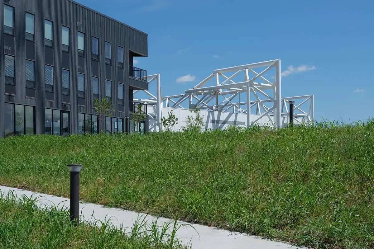 The project emphasizes connection between person, river, and city. It links the historic West Bottoms neighborhood to the future Levee Park, encouraging walkability and engagement with the surrounding urban fabric.