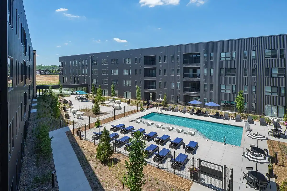 Designed to elevate a common multifamily typology, the project emphasizes connection between person, river, and city. It links the historic West Bottoms neighborhood to the future Levee Park, encouraging walkability and engagement with the surrounding urban fabric.