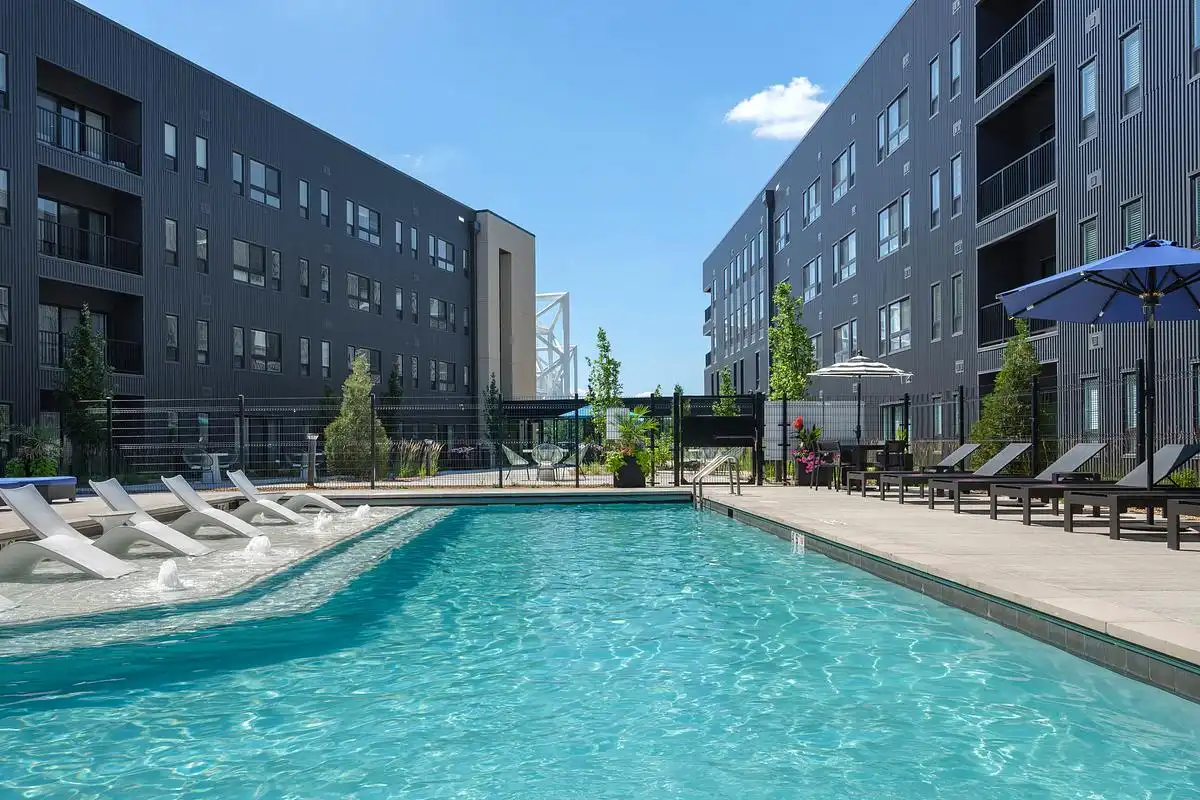 For The HELM community, there are separate grit fit and lux fit exercise areas, a heated, salt-water pool, grilling stations, a community kitchen, and a bark park and pet spa.