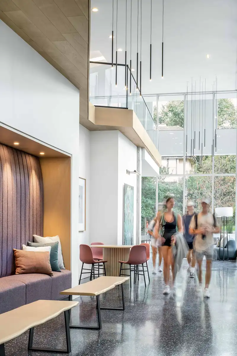 Luxury amenities include vast fitness rooms, a spa, and therapeutic features to elevate healthy living for tenants. Floorplans range from spacious studios to expansive townhomes with single and double occupancy options, including efficiency “pods” that support density and affordability while maximizing square footage.