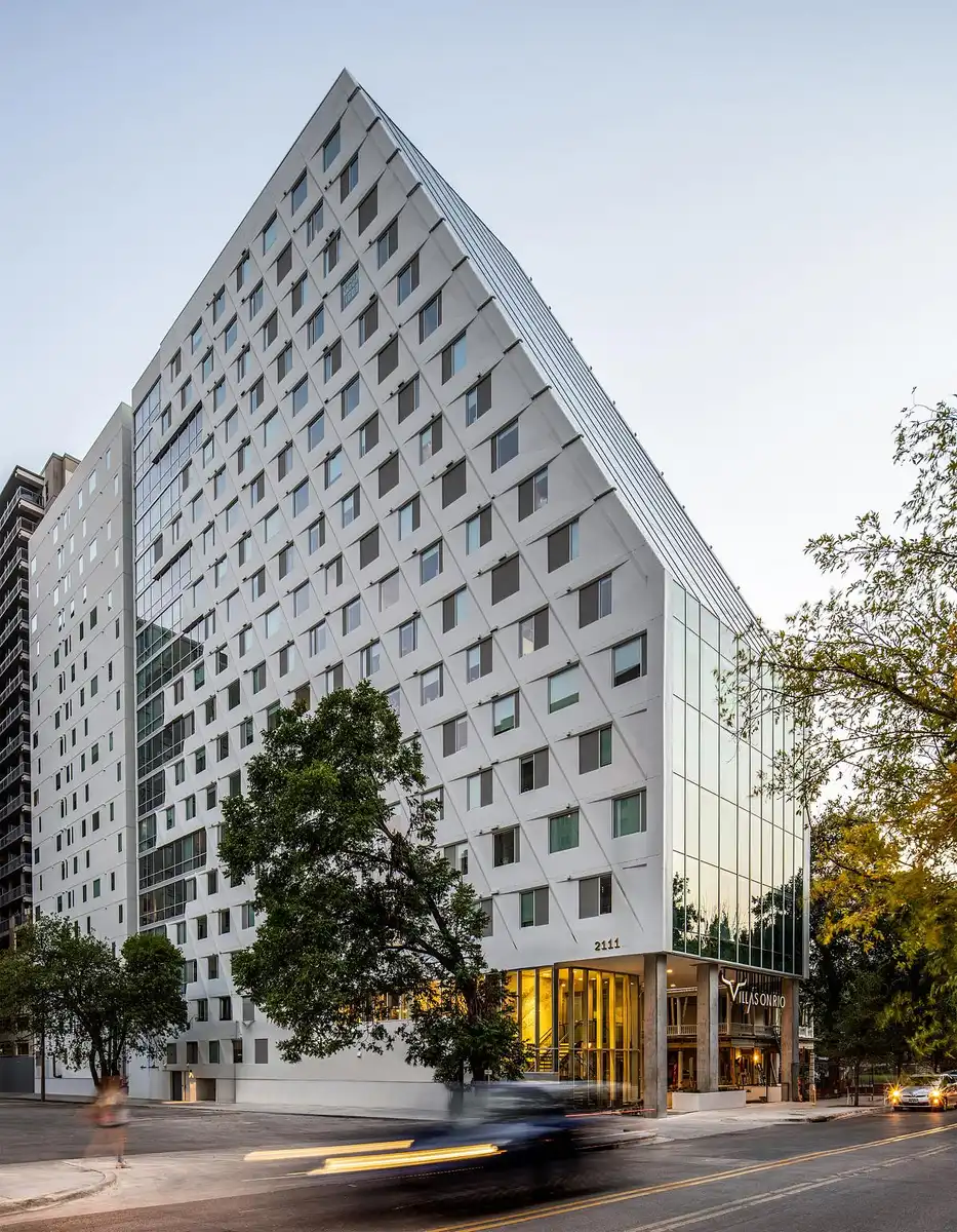 With four levels of underground parking and 700 bedrooms, the project thoughtfully accommodates the growing need for more housing near the University of Texas campus.