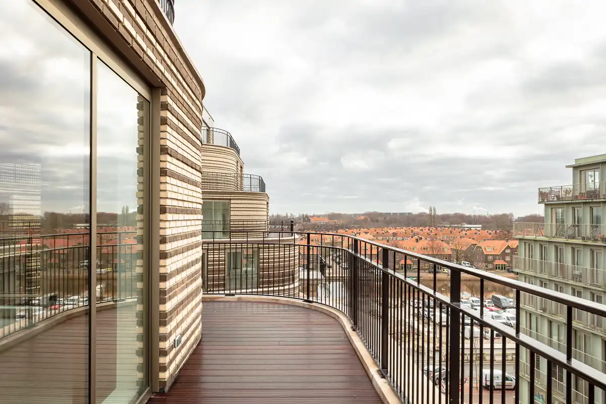 Located in the new urban district of Overhoeks in Amsterdam North, The Bow stands as a striking residential building with 67 rental and 41 owner-occupied apartments. Positioned on the northern bank of the IJ River, directly across from Amsterdam Central Station, the area distinguishes itself as a dynamic, mixed-use neighborhood – close to the city center and urban amenities. Buildings and green spaces alternate in a campus-like layout, creating an attractive and diverse living environment.