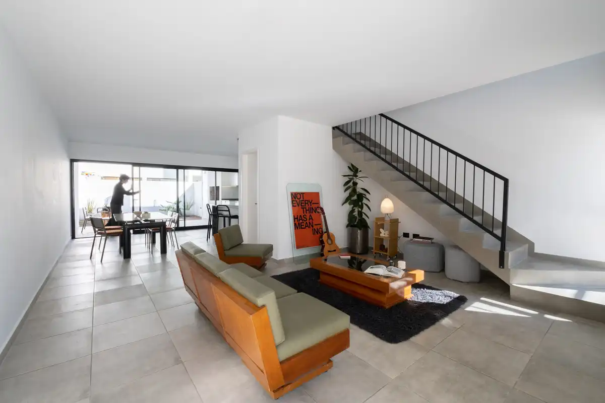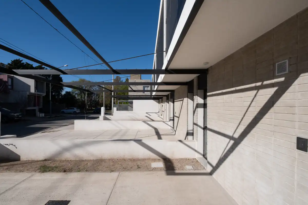 The Dúplex 4F project is located in the Las Huertillas neighborhood of Córdoba, Argentina, in a low-density residential setting characterized by the construction of two homes per lot. The proposal develops a series of four units, each measuring one hundred and twenty-five square meters, located on two lots between party walls with an east-west orientation.