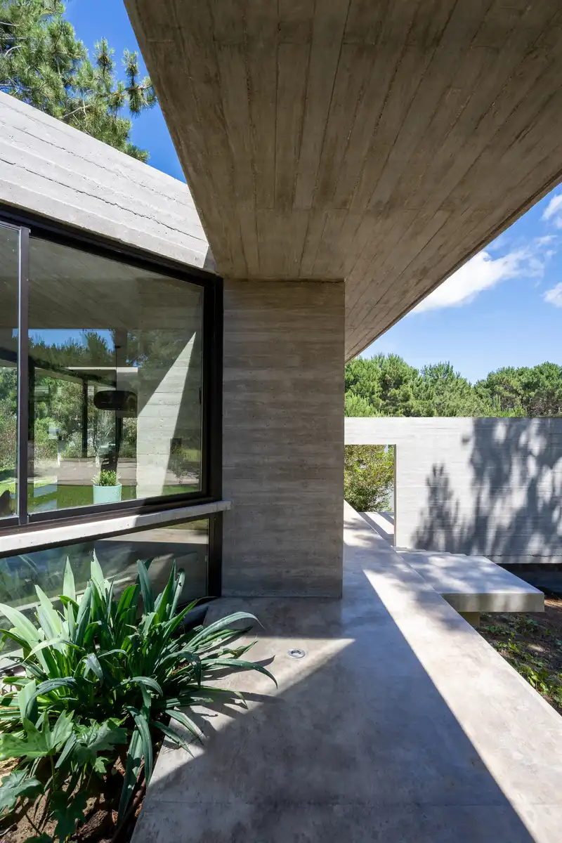 Senderos House is located in Costa Esmeralda, an area of outstanding natural beauty on the sand dunes of the Buenos Aires coast. The site is characterized by a harmonious coexistence between native grasslands, a young forest of acacias and maritime pines, and areas of established forest that the project seeks to preserve.