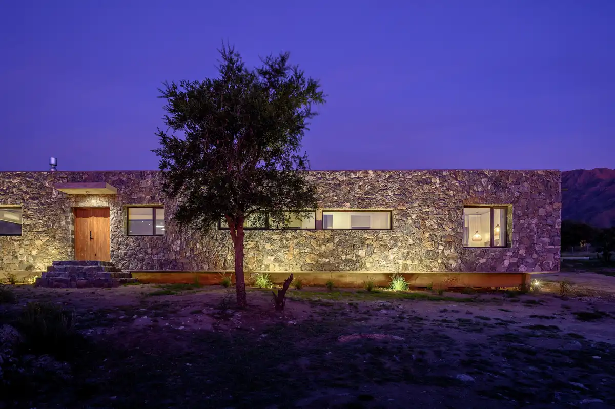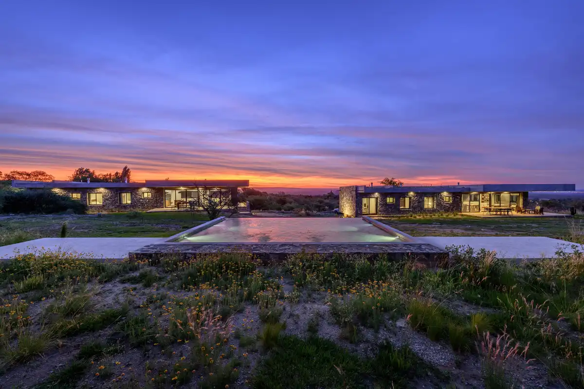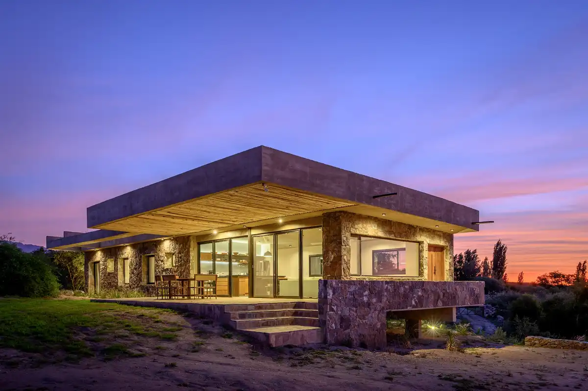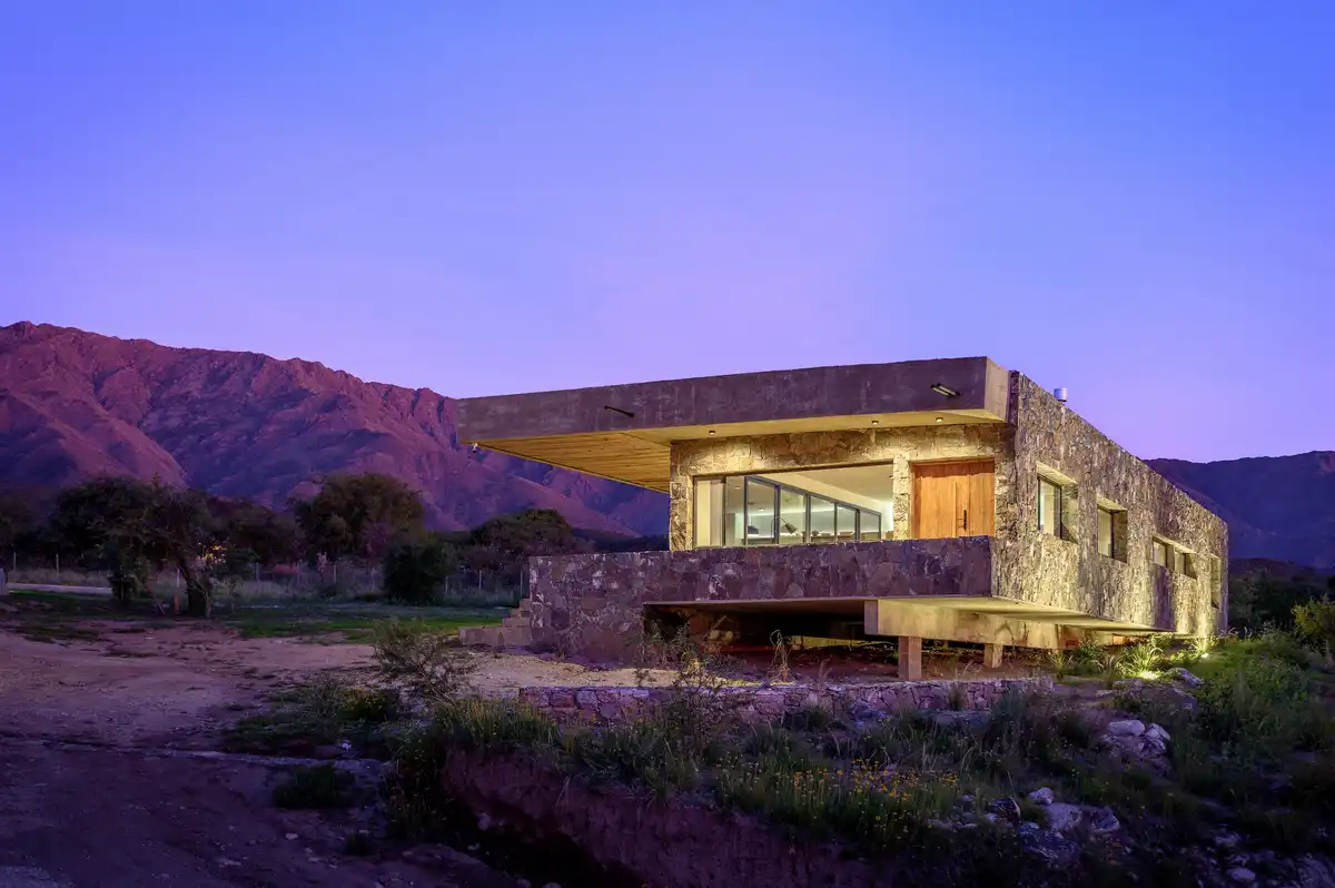 Casas Piedra Suspendida é um conjunto residencial de duas residências unifamiliares com piscina compartilhada, implantado em uma encosta de forte declive em Yacanto, departamento de San Javier, Córdoba, Argentina. O projeto se insere em um contexto serrano caracterizado por amplas vistas e uma topografia acentuada, condições que determinam diretamente sua organização espacial, estrutural e material.