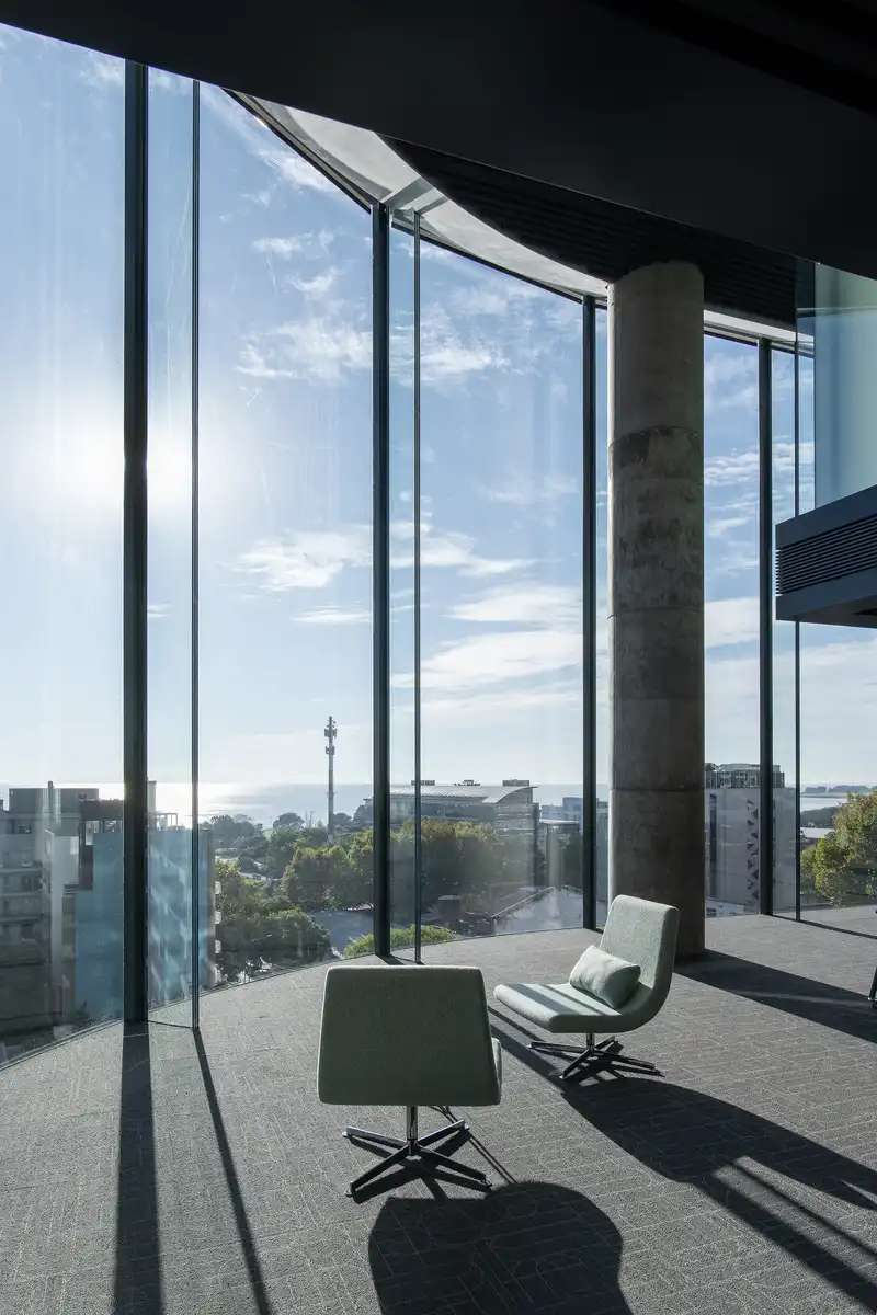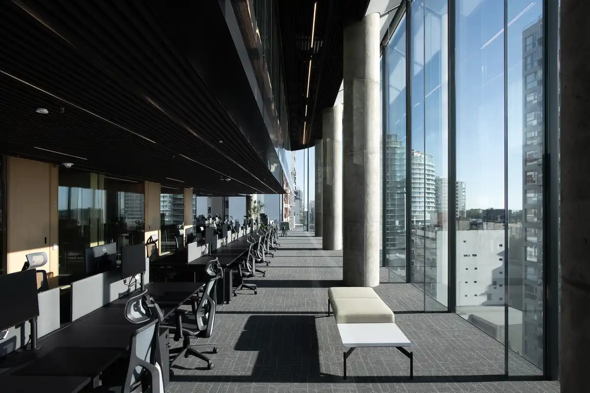 Located adjacent to the Mitre railway and near the Río de la Plata, the site required complex subterranean strategies to minimize disruption. The foundation systems were engineered to stabilize surrounding infrastructure and manage water intrusion, and the core positioned against the railway to create an acoustic buffer while keeping river views unobstructed. Low-iron glass ribs with structural slabs ensure the façade’s performance against wind pressure and create a transparent envelope of exceptional refinement — an achievement previously unprecedented in Buenos Aires.