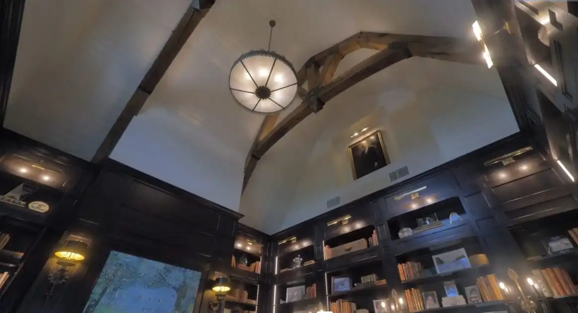 Formal living areas strike a balance between intimacy and grandeur. The richly appointed library, with dark wood paneling, custom shelving, and a fireplace, creates a space that is at once scholarly and inviting—a perfect blend of form and function.