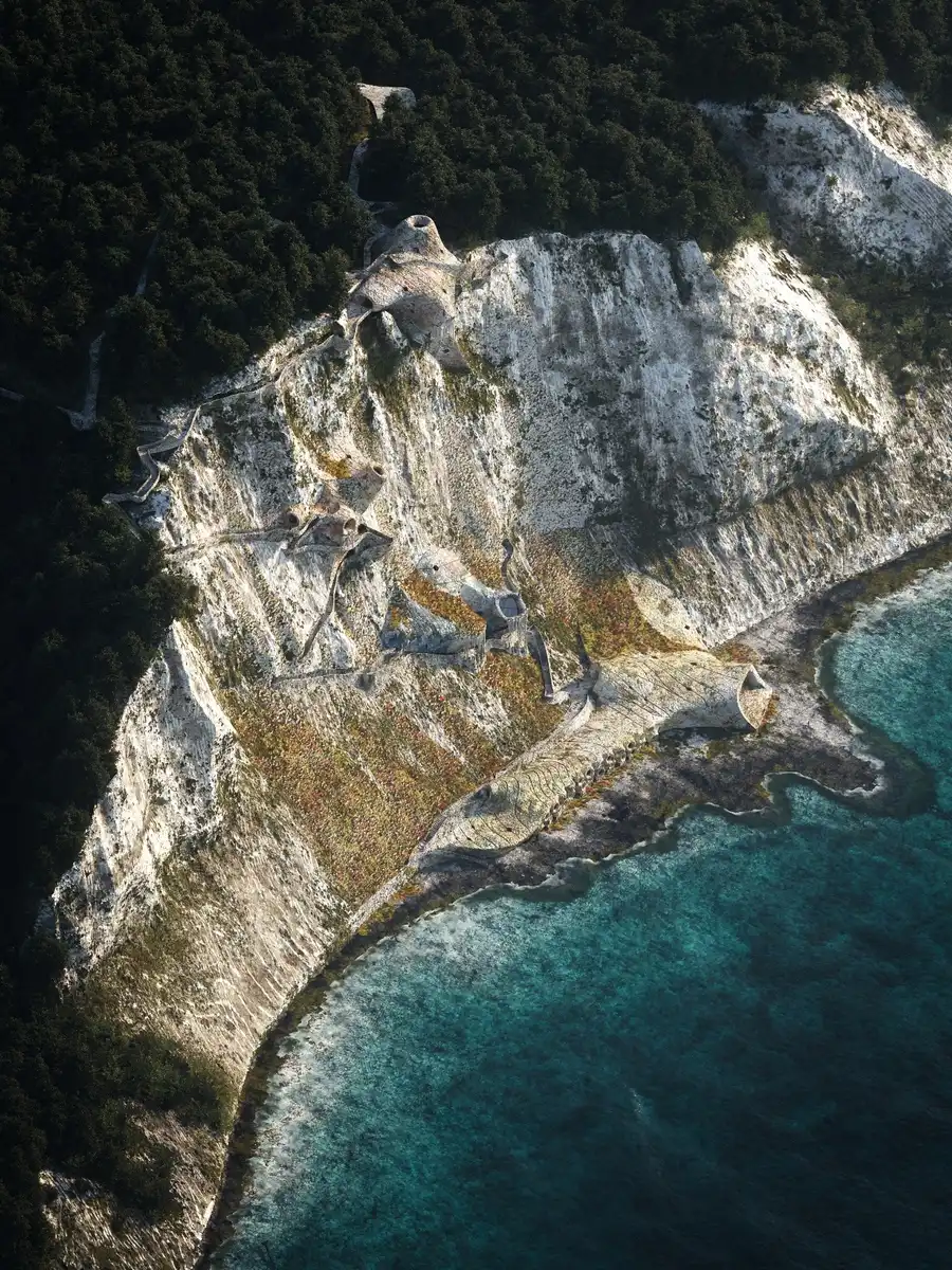 Micro Ecologies: Synthetic Nature: An experimental intervention at Møns Klint that uses chemical precipitation to stabilize the coastline: