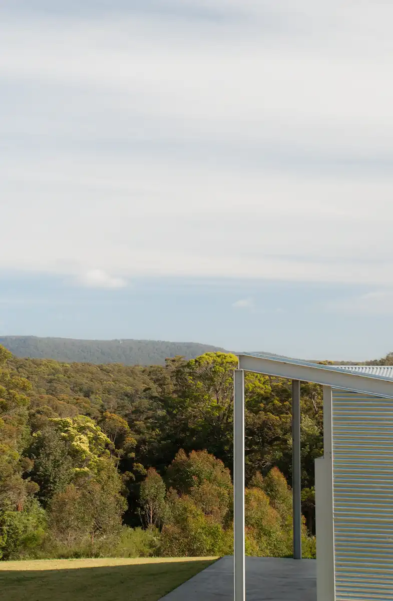 Yatte Yattah House sits high on 25 acres of land above a clearing; it overlooks two dams and the Budawang Range. Sited to take advantage of views, prevailing breezes and for bushfire protection, it is a refined house that has a deep connection to its natural surroundings.