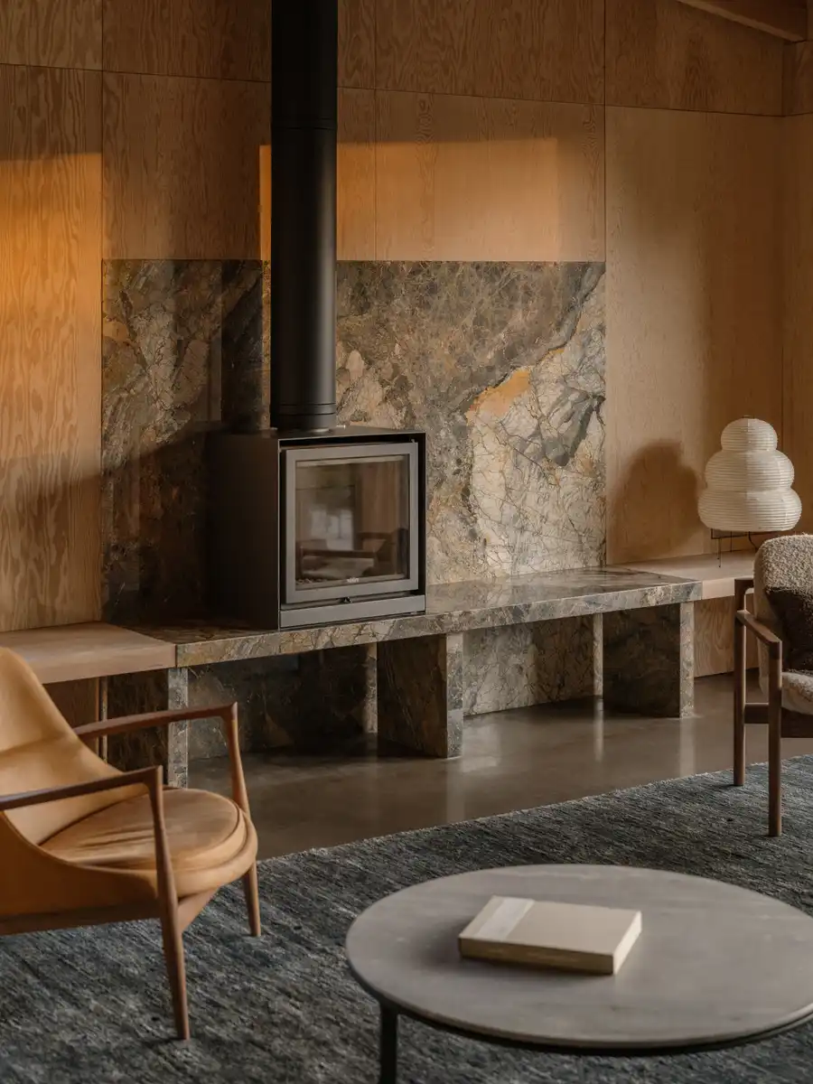 Built on a small and challenging plot, the home wraps around a vast rock that provides natural shelter. A generous porch, clad in Scottish cedar, offers the first glimpse of retreat, serving as a welcoming threshold to those who enter.