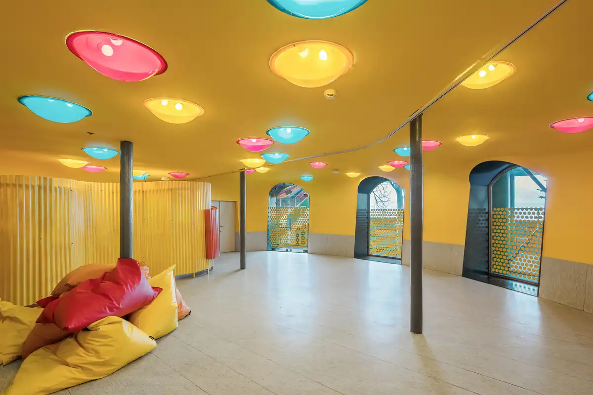The Dream Space – A Multipurpose Multimedia Room is a dedicated space designed to provide families and visitors with a comfortable, private environment for rest, meditation, small workshops, and conferences, located within the Tibidabo Amusement Park in Barcelona. This space is thoughtfully integrated into the park’s broader concept of play and family-friendly experiences, offering a serene, welcoming atmosphere amidst the park’s vibrant activity.