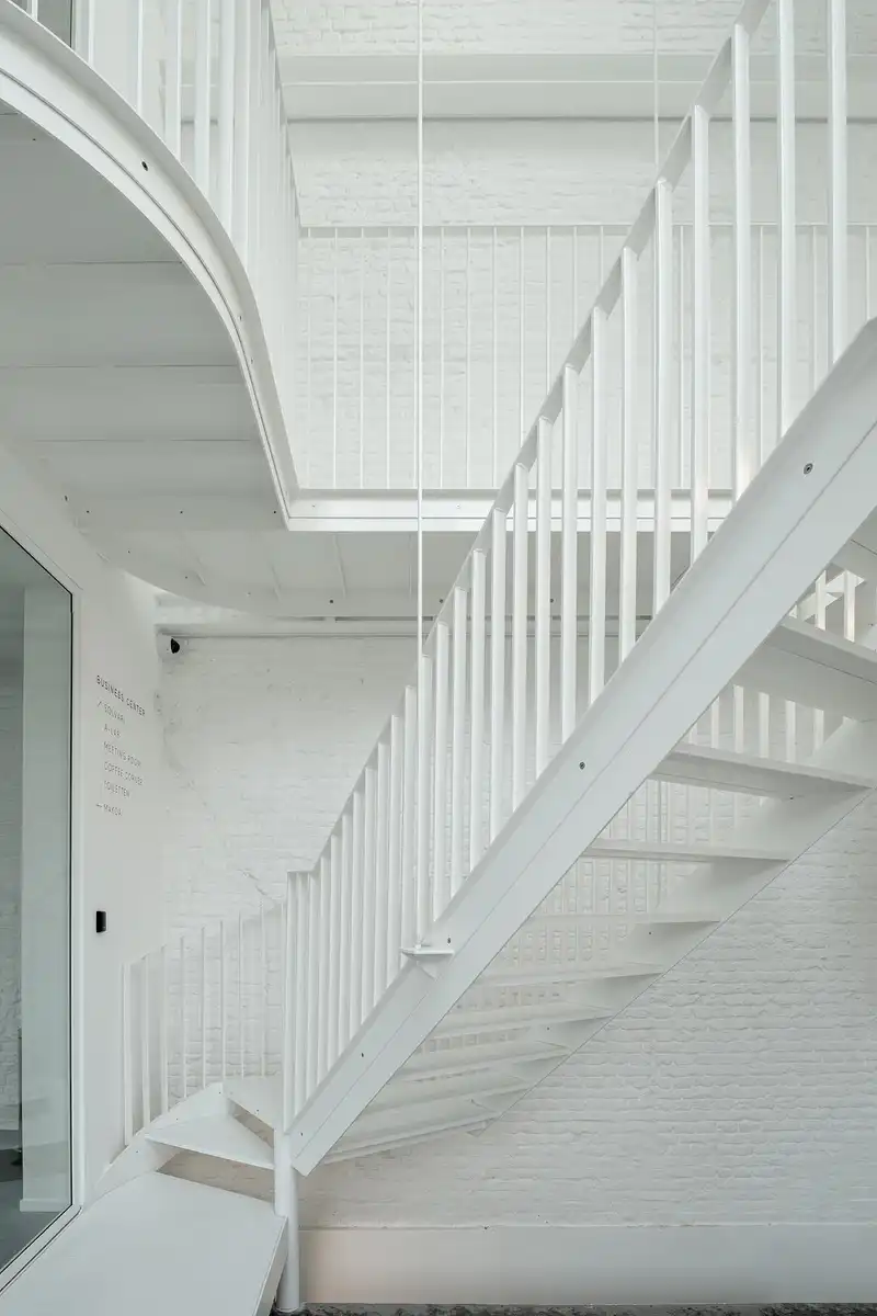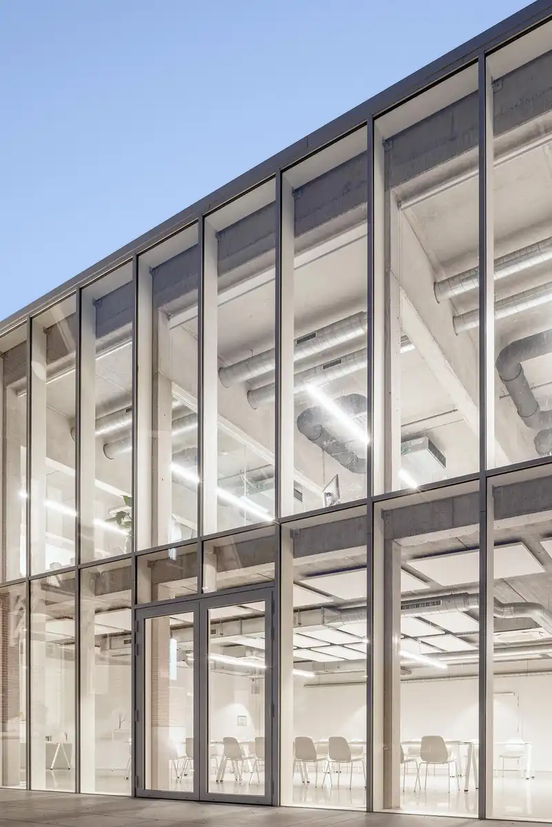 Services are not hidden but articulated as an architectural element that weaves through the building. The architecture avoids camouflage, opting for uncompromising clarity: a radical functionality set in contrast with its surroundings.