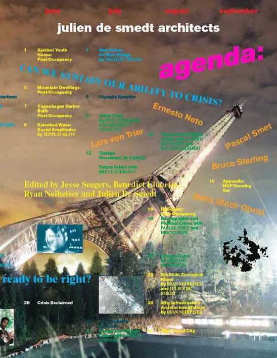 Contributions from: Hans Ulrich Obrist, Lars von Trier, Bruce Sterling, Ernesto Neto, Pascal Smet, Michael Speaks, Geoff Manaugh, Brendan McGetrick, Barbara Vanderlinden, Sozyone Gonzalez, Angelo Consoli, Bruno Brunet, Hans Ibelings, Tom Avermaete, Robert Winkel, Eric Corijn, Roland Legrand, Hugh Maaskant, Cleon Peterson, Albert Ravestein, Selecao Brusseleira