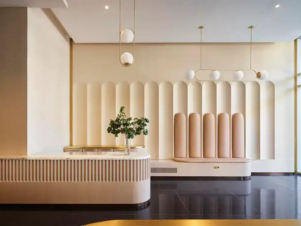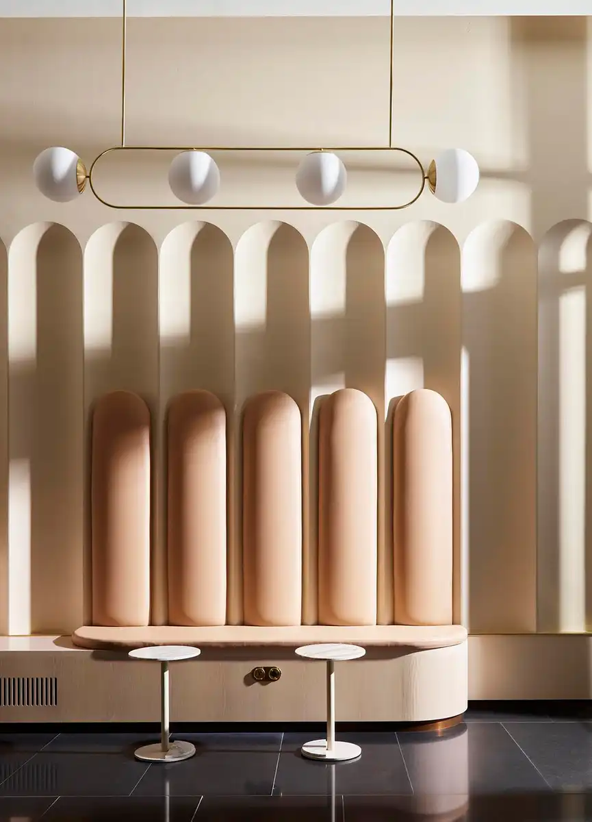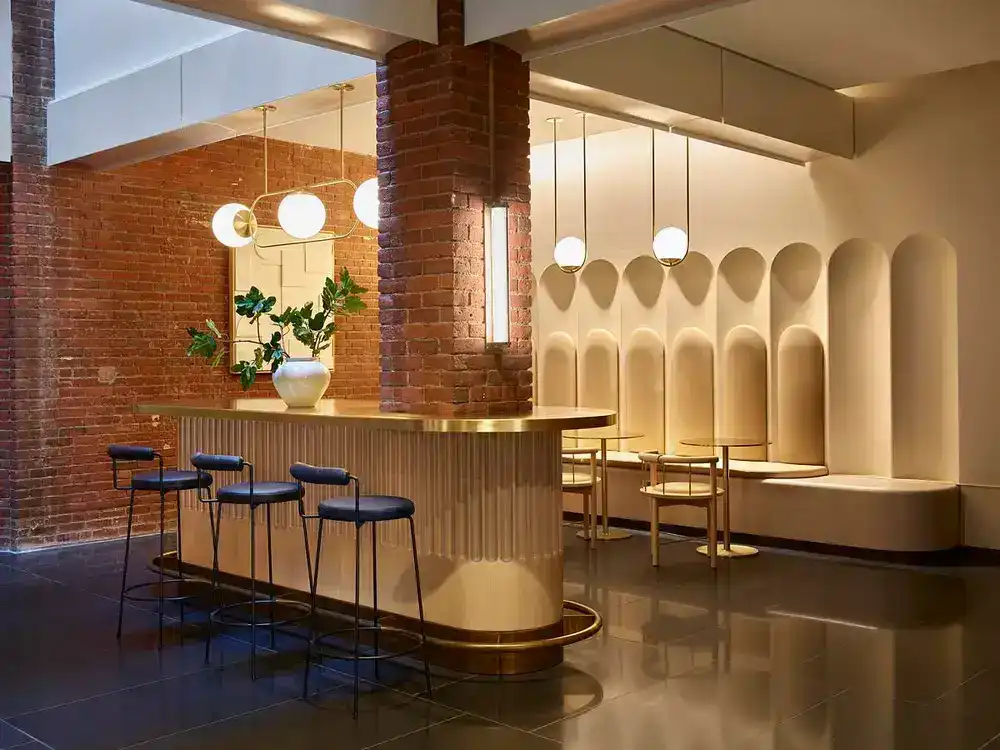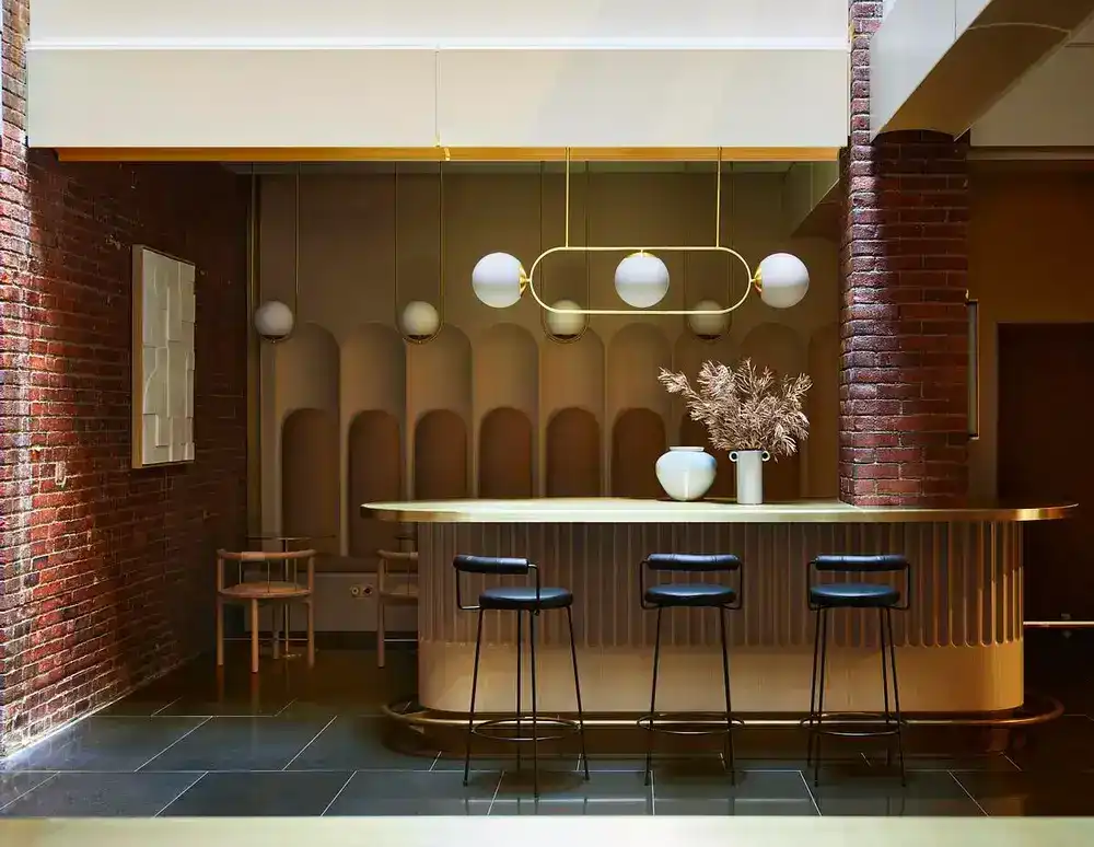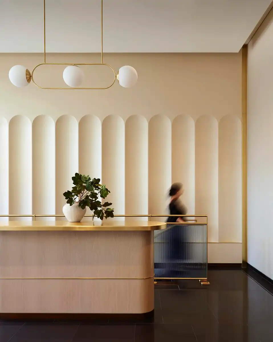 We brought the history and design of the building’s unique facade into the interior. Featuring distinct arched geometry and rich details, the building’s exterior is a serene presence in its neighborhood. With a modern sensibility, we developed an architectural language that brought the exterior functional and ornamental elements into the building’s core and adapted them to the scale of the human body, creating juxtapositions of materials and scales.