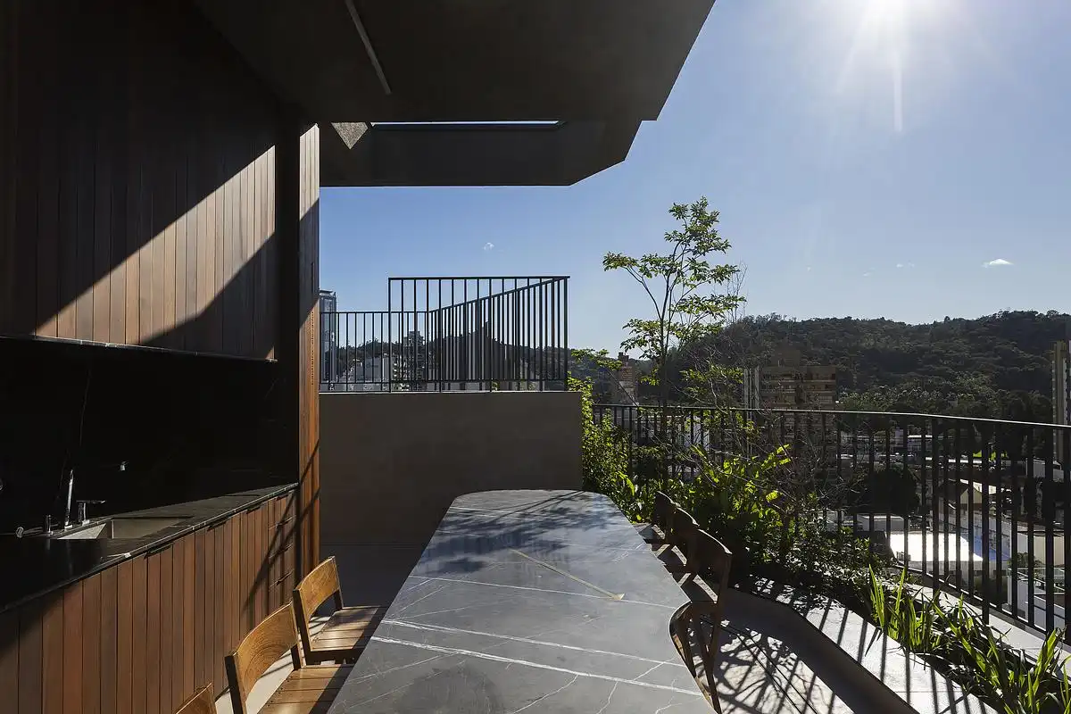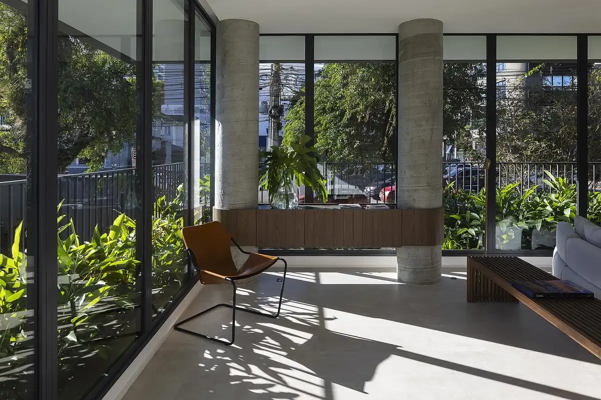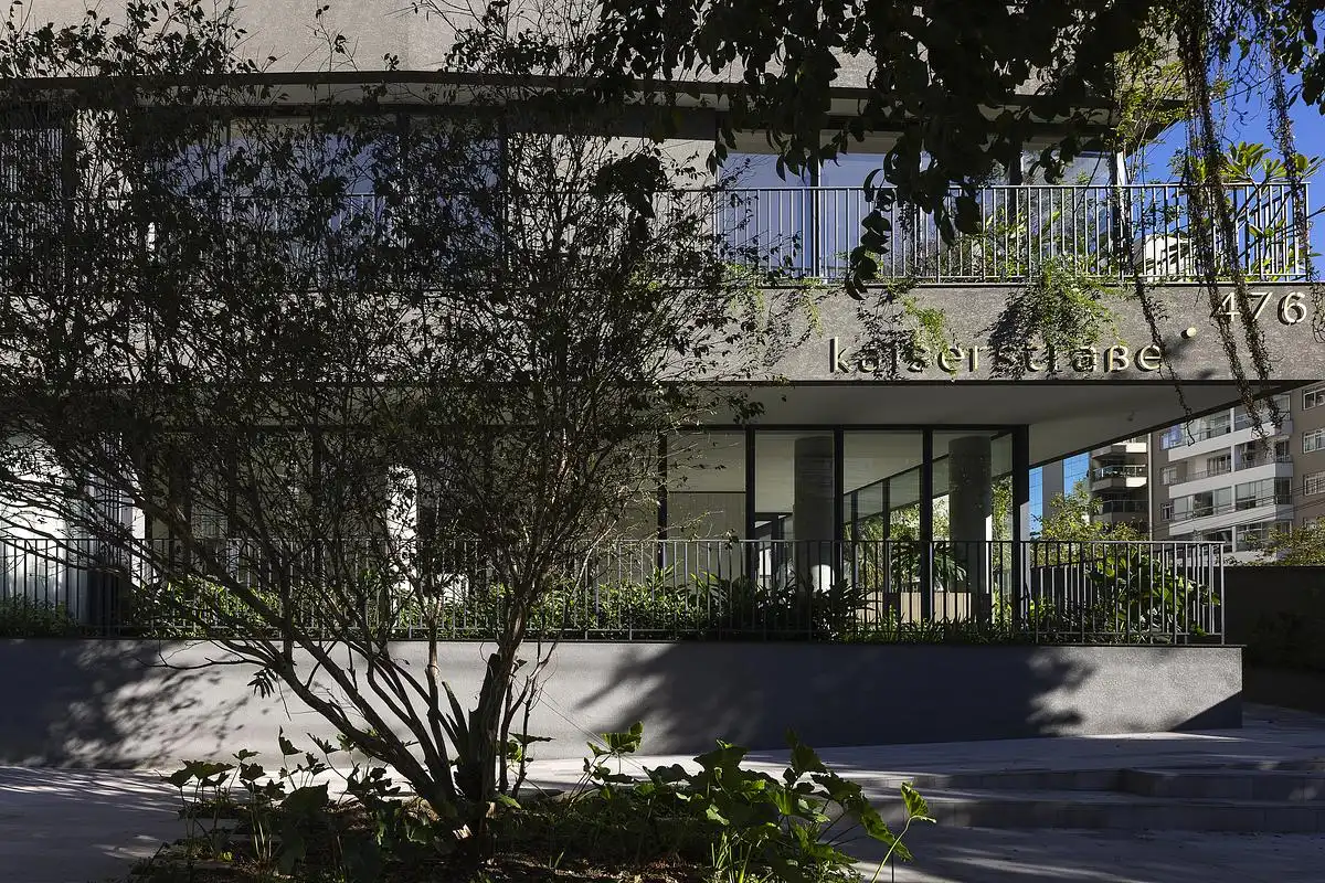 Kaiserstraße redefines urban housing by merging the privacy and richness of a house—verandas, courtyards, and vegetation—with the advantages of vertical living. Each apartment occupies a full floor with terraces, private pools, and integrated planters, creating a vertical garden. The design was inspired by the historic villas of Alameda Rio Branco, reinterpreting their openness and connection to nature within a contemporary, high-densi