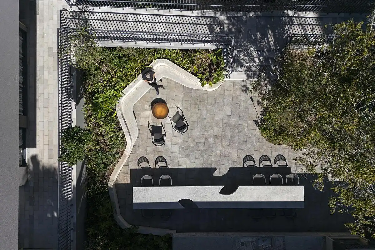 The open ground floor was motivated by a desire to break from the prevalent urban trend of walls and gates, fostering a more generous interface with the city. By removing barriers, the design reconnects private and public realms, encourages visual and spatial continuity, and creates opportunities for social interaction, allowing residents and passersby to engage with the building and its landscaped outdoor spaces.