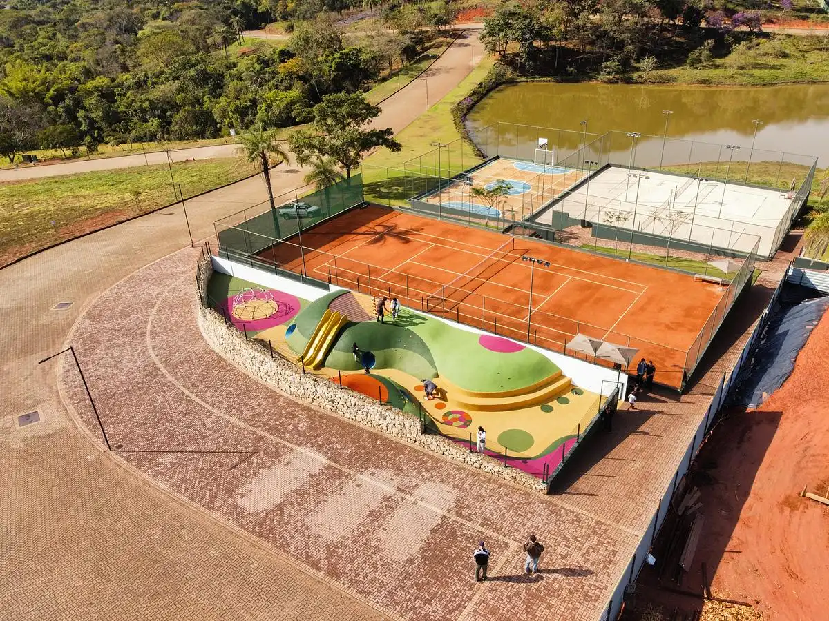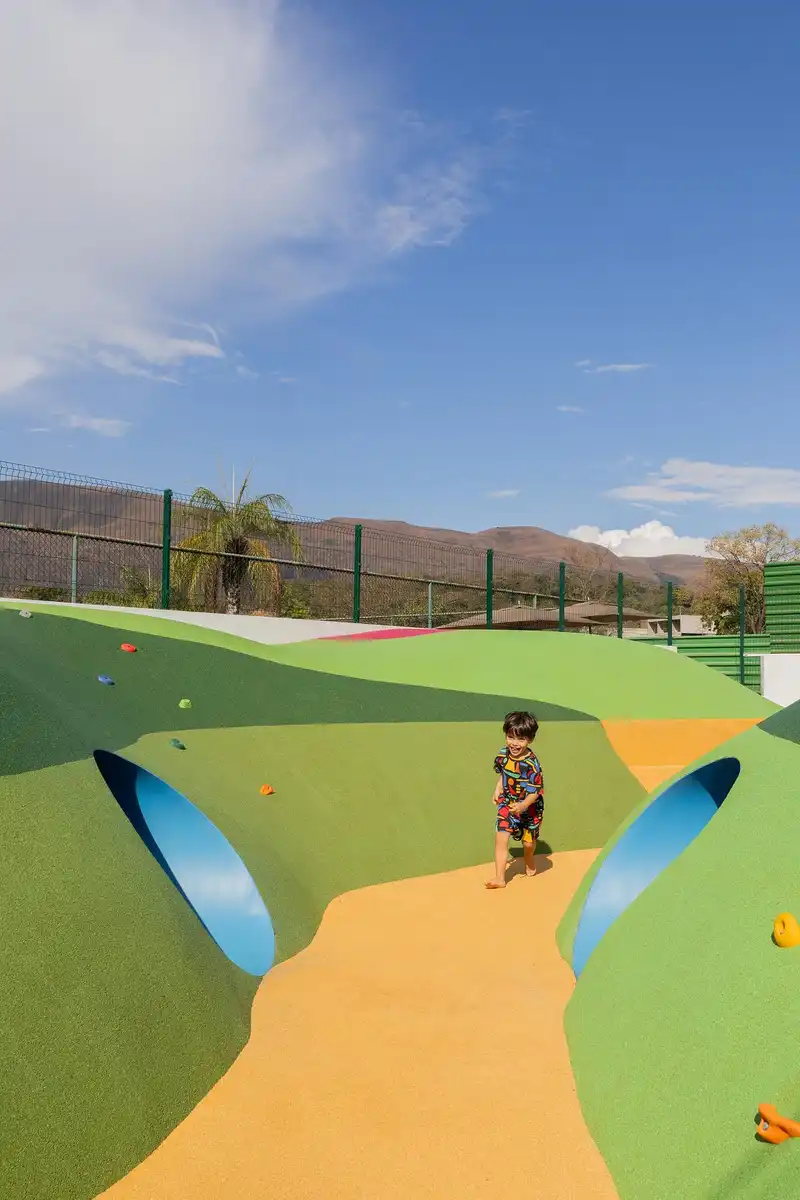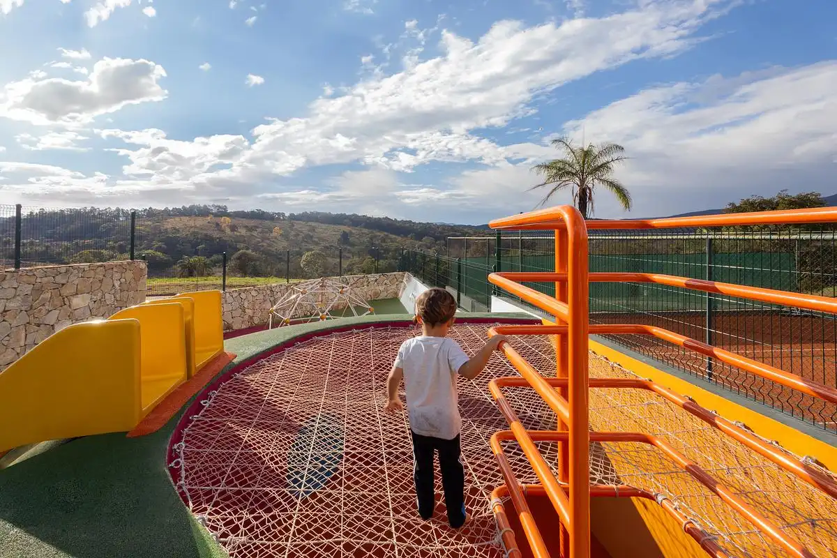 In this manner, the playground preserves the view of the Serra da Moeda mountain range, a constant presence in the local landscape.