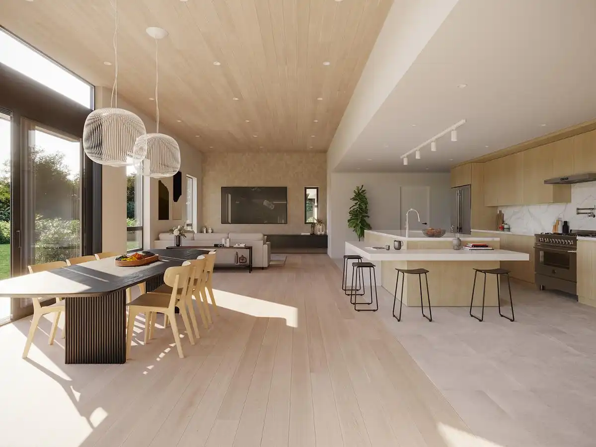 The design of Castle strikes a careful balance between the timeless appeal of the traditional California ranch-style and the clean simplicity of modern architecture. By preserving the low-slung horizontal form and welcoming front façade typical of ranch homes, while introducing minimalist detailing, refined material transitions, and open spatial flow, the design feels both grounded and current. Inspiration came from the clients’ desire for a home that honors California’s architectural heritage while supporting a modern lifestyle centered on indoor-outdoor living, natural light, and a sense of calm.