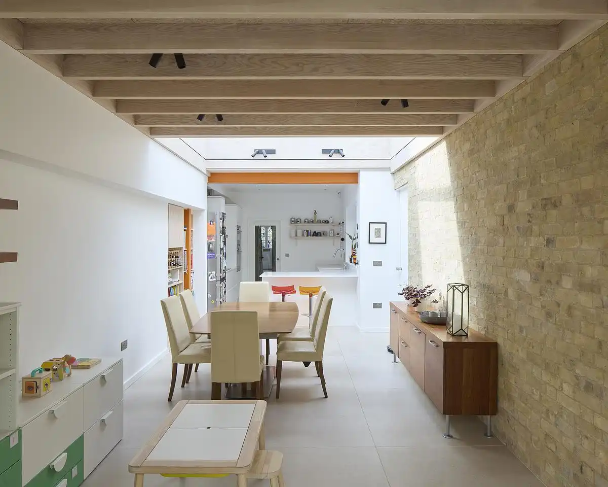 The Terrace Transformation is the creation of a new rear extension, internal alterations and a new loft dormer. A rear extension enabled the creation of a new family kitchen space with dining room overlooking the courtyard garden.