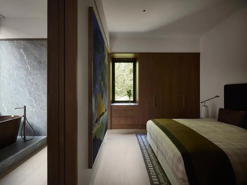 This waterfront, 6-bedroom residence is oriented to capture the breathtaking sunsets at the serene lake. Designed for an art collector-couple, it offers generous spaces to host family gatherings and entertain friends.
