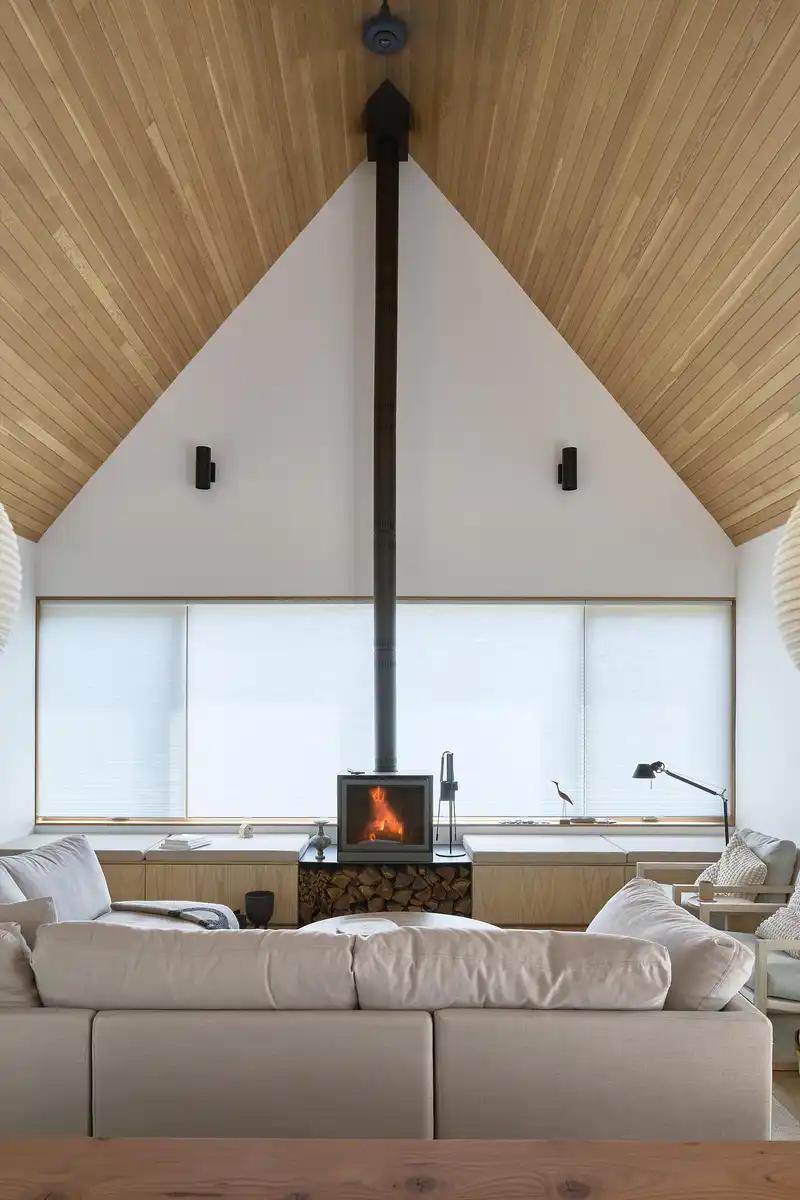 The cabin’s clever design and thoughtful layout create a sense of warmth and comfort, perfect for those seeking a peaceful getaway from the hustle and bustle of city life.