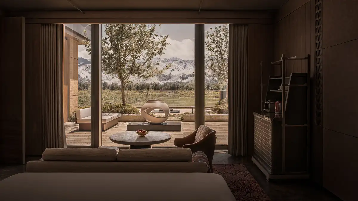 References to the Tianshan Mountains, Nalati sunrise, Gongnaisi River, and Wusun totem pillars are subtly woven into the arrival experience, creating a ceremonial transition that guides guests from the bustle of the outside world into the quiet majesty of a steppe retreat.