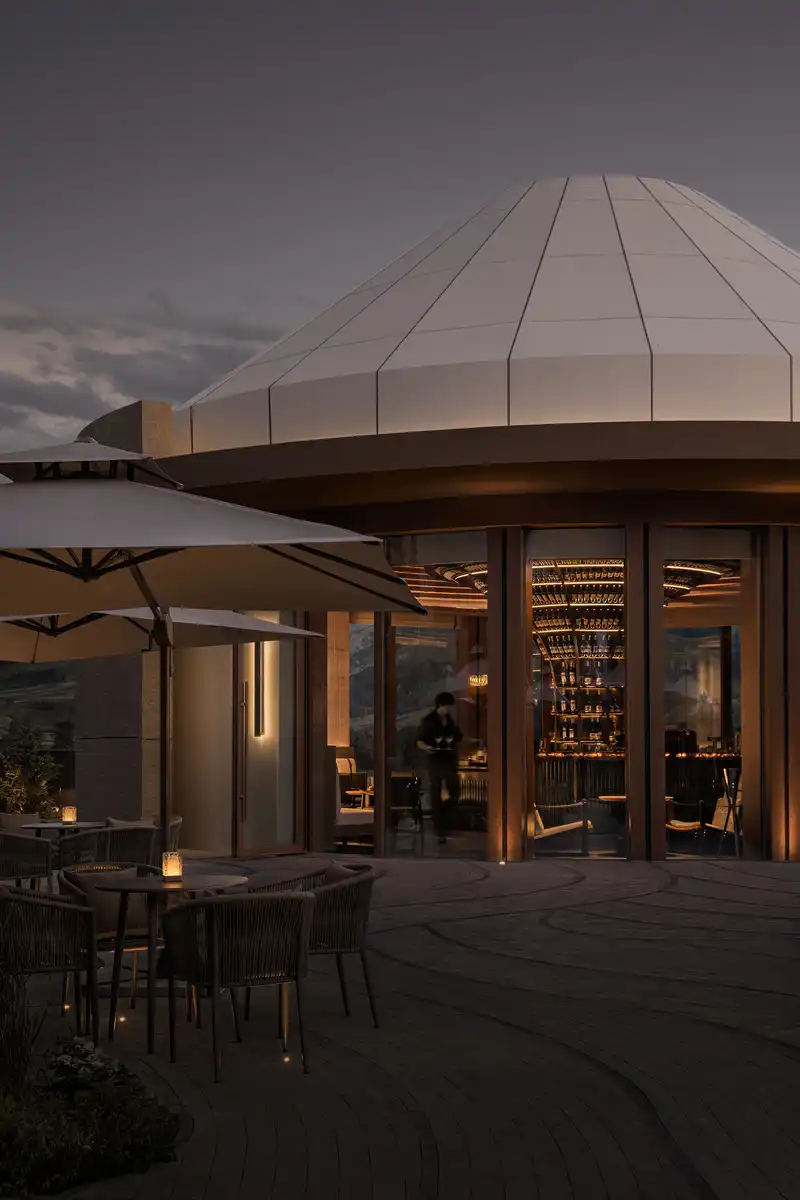 Every design gesture is rooted in the human experience—whether settling into the circular lounge, quietly taking in the view beyond the window, or strolling along the curved paths with a drink in hand. The space is not simply defined; it becomes a journey to wander, to sense, and to find resonance.
