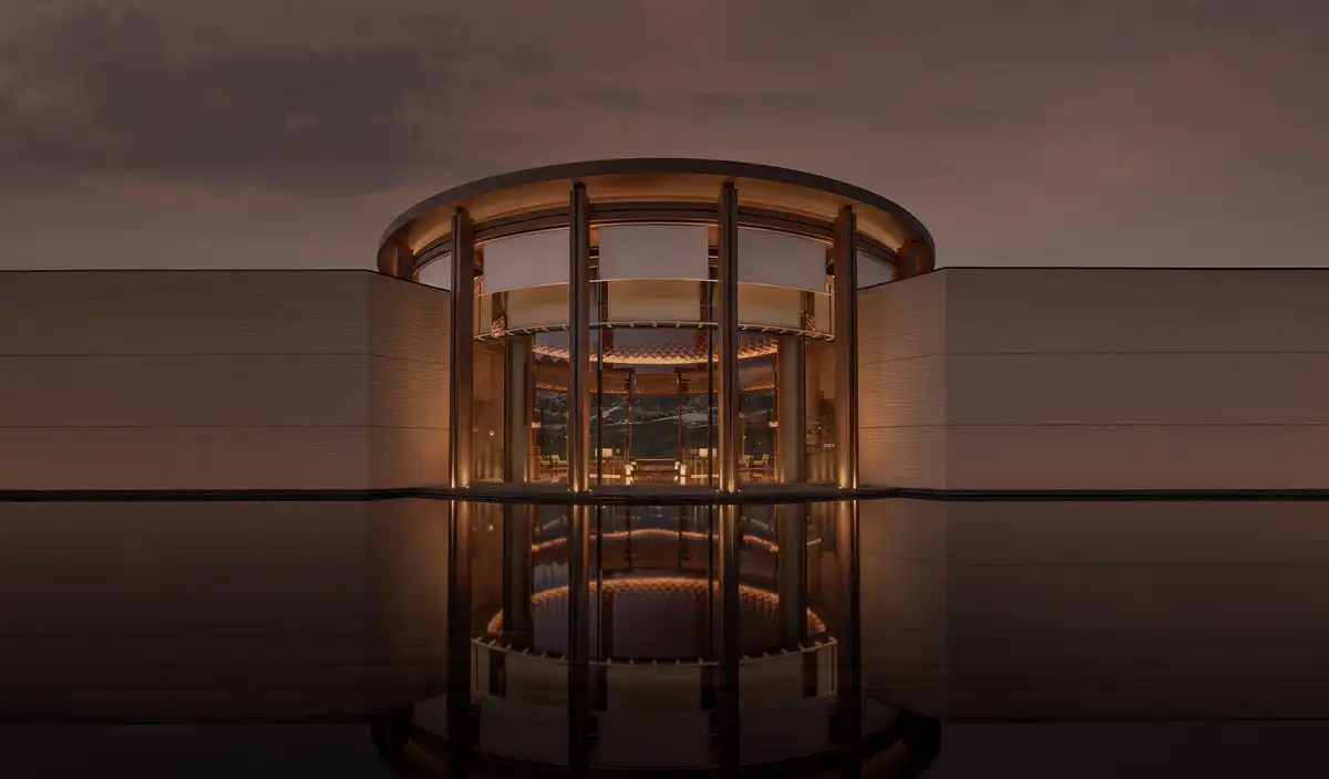 The journey begins in pursuit of light. Inspired by the Nalati sunrise, the hotel’s entrance features a curved canopy that evokes radiating sunbeams. Greeted with a traditional Aul-style welcome, guests are immediately immersed in an atmosphere rich with local culture.