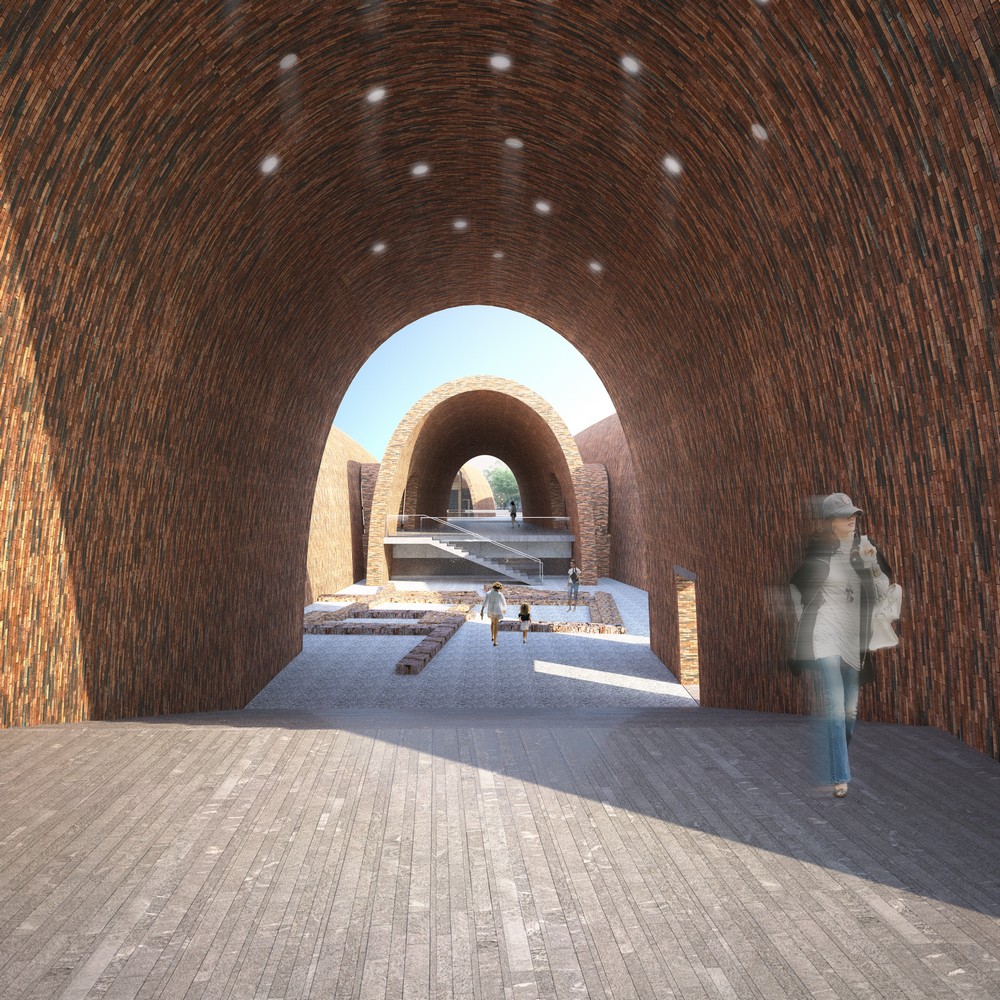 A number of different sizes and different body mass brick arch layout, creating a atmosphere, relaxed, casual, manual and natural. When walking across the multiple kilns and sunken courtyards, people can obtain a kind of both familiar yet strange spatial experience.