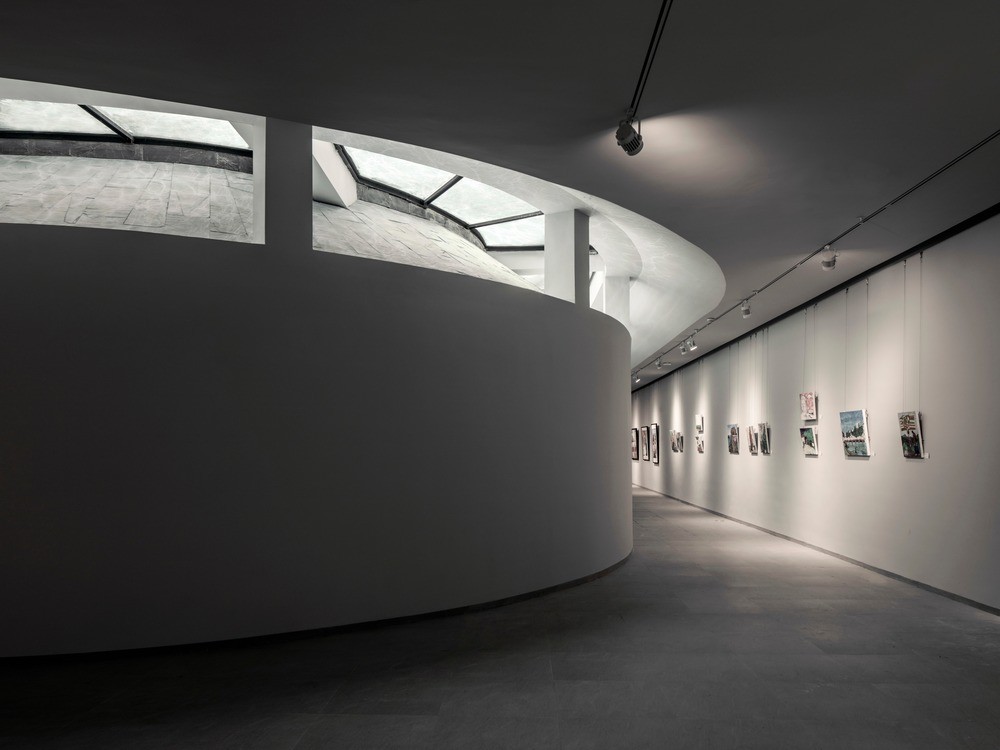Walls, the most important part at shaping exhibition space and atmosphere, are made of rammed earth to offer a poetic feeling.
