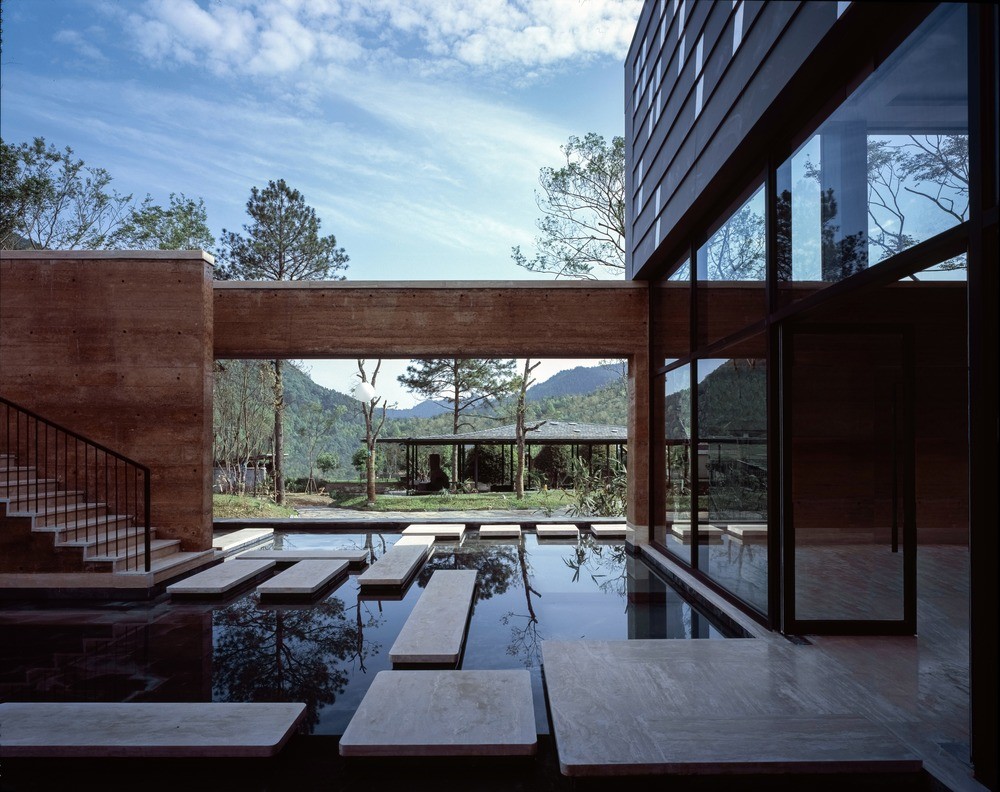 The main passage is a long transparent space, 100 meters, around it are rammed-earth walls, 4 meters high, grow from earth. Experiences vary when visitors walk through different areas, visitors will be attracted by the outstretched eaves after the woods area. The sound from the creeks will relax visitors a bit, and what lies ahead lead visitors further into the cryptic but joyful world.