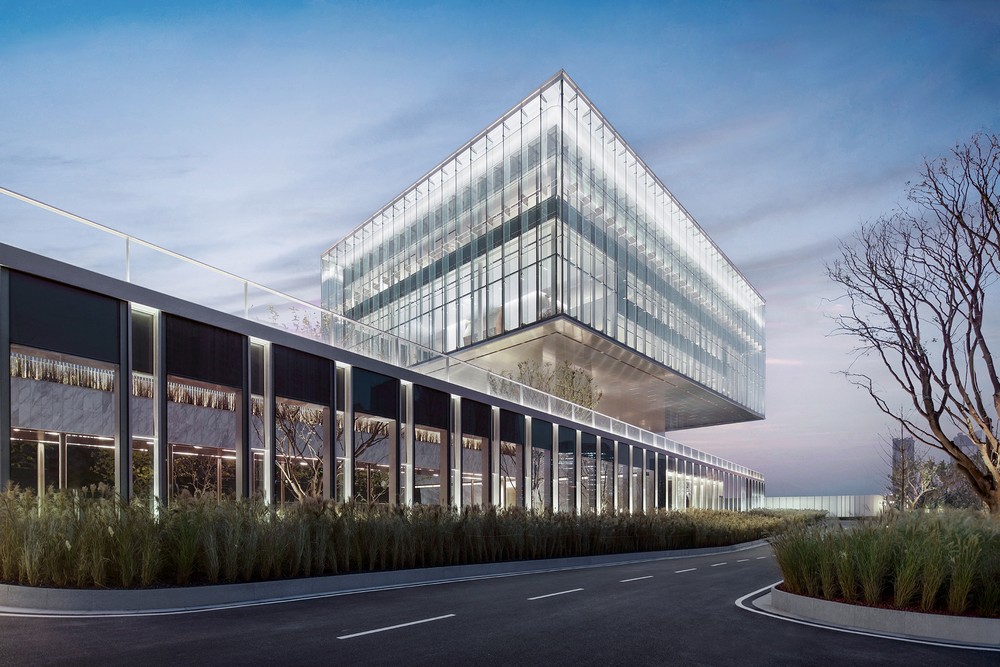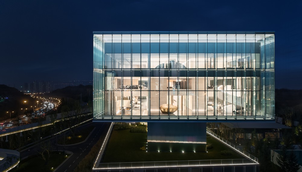 The project is situated at the junction of two core areas of the city, the Central Culture Business District (CCBD) and Qujiang Cultural Industry Cluster (QCIC). Set at the high point of Leyouyuan and adjacent to Xi’an Botanical Garden, it’s a striking presence, which floats in the air like a futuristic crystal box.