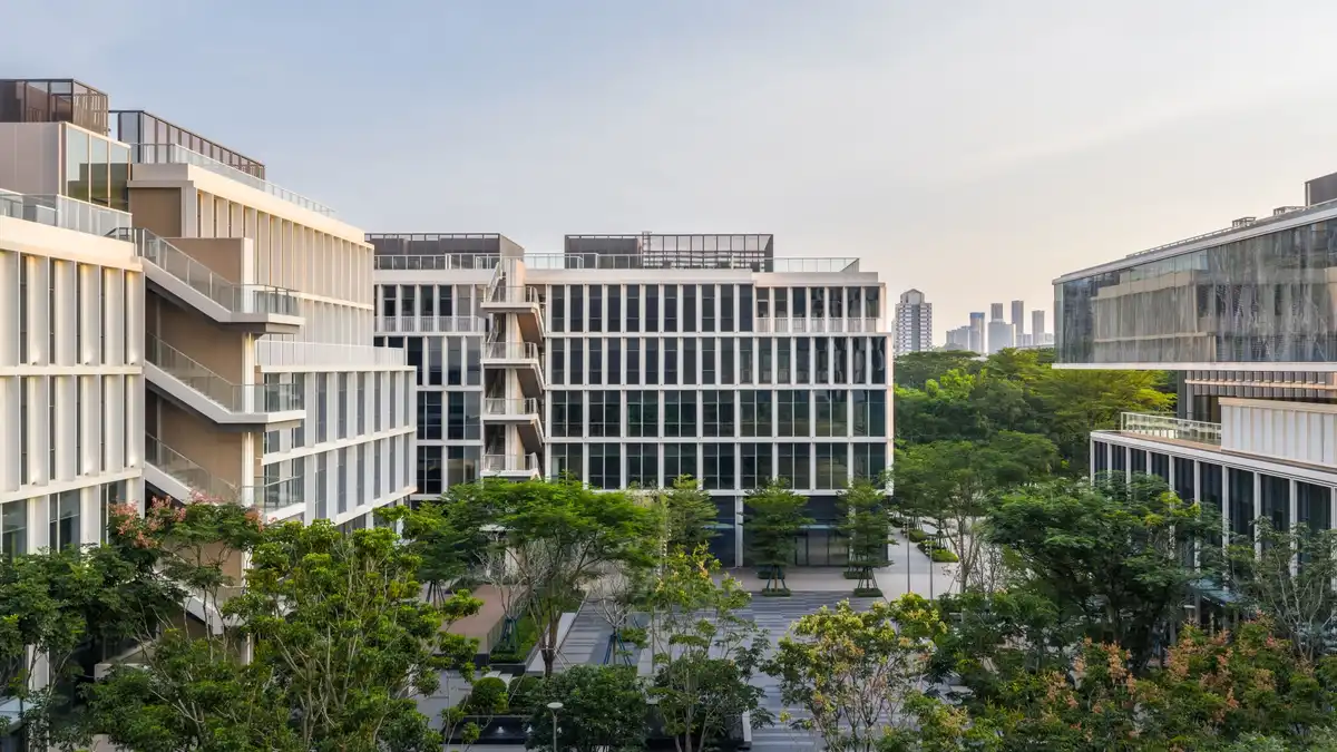 Abundant natural light enters deep into the interior through vertical voids and transparent circulation zones, creating bright, healthy, and welcoming environments. The white aluminum façades with slender vertical fins filter sunlight and ensure thermal comfort in the subtropical climate. Together, these buildings show how thoughtful architectural design can respond to client ambitions while creating adaptable, efficient, and people-centered workplaces for a new generation of professionals.