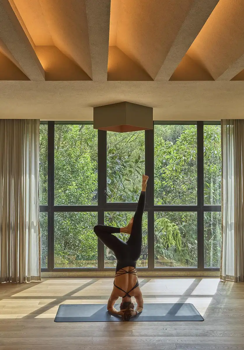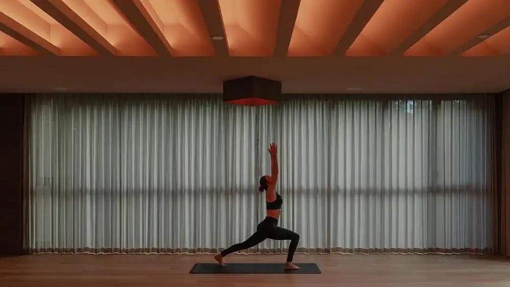 Lighting control is organized according to the reception of natural daylight, allowing artificial lighting to adapt dynamically throughout the day. Custom lighting scenes were developed to support different yoga practices and levels of meditation, ensuring appropriate light intensity and atmosphere for each activity.
