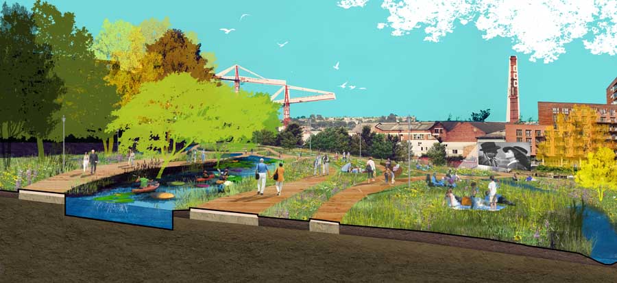 “The challenge was to come up with a public design project that went beyond the commonly accepted role of an urban park and engaged communities with the benefits of green infrastructure to improve the way we live in our cities. We didn’t know what we would get but having just completed the shortlisting we’re amazed at the response and quality of ideas.