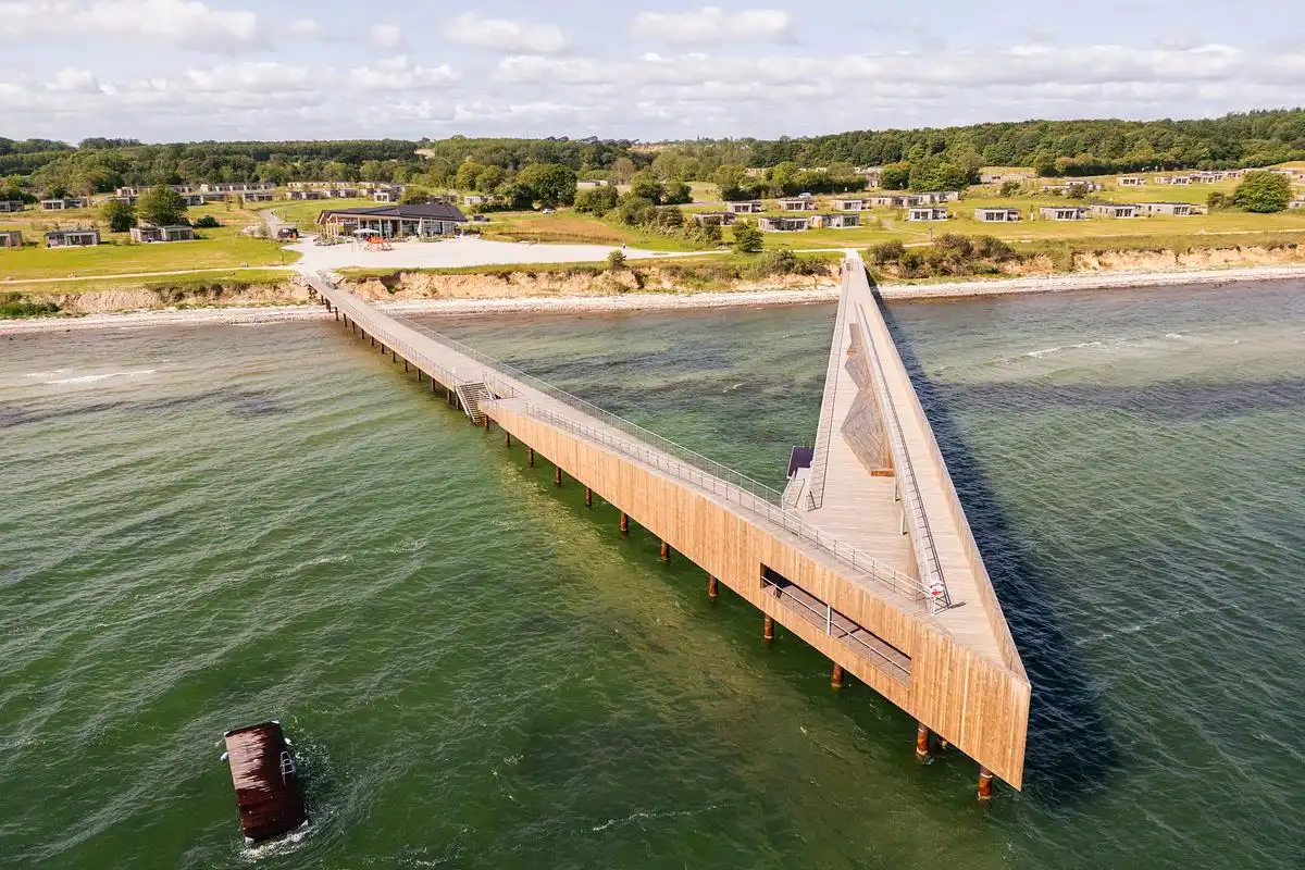 To fulfill the architectural ambition, they chose the local architectural firm ZENI arkitekter a/s, to design the center building (Market Dome), the Beach Café, the welcome building, the bicycle rental center, a visitor farm and a large pier, stretching out into the Baltic Sea. The holiday homes were designed by Horsens based VIVA Arkitekter ApS and the surrounding landscape by SLA.