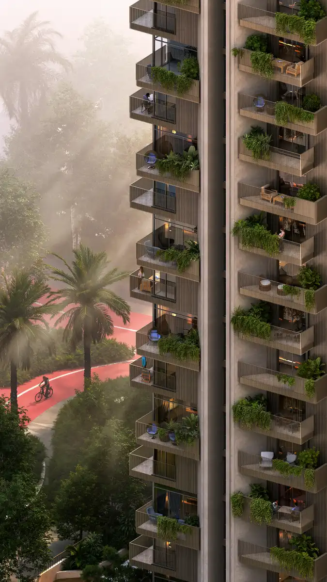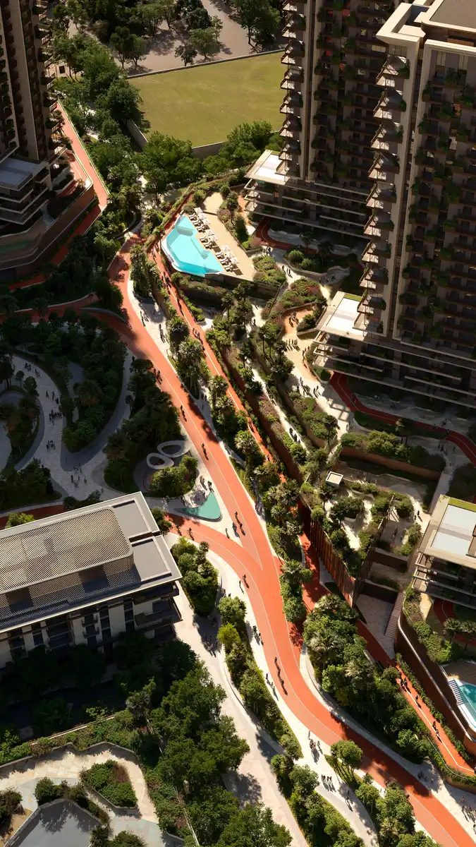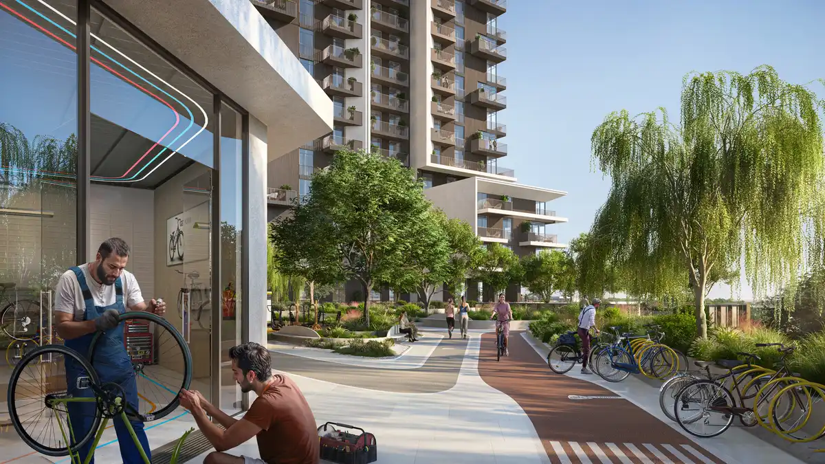 Designed with a lifestyle-first approach, the residences benefit from three swimming pools oriented towards the central park, two gyms with vertical gardens, and over 10km of tracks, trails and loops. It also forms a seamless extension of the Al Qudra Cycle Track, one of Dubai’s longest and most popular cycling routes, featuring varying degrees of elevation. This design invites a steady flow of visiting cyclists – from seasoned athletes to casual riders – adding to the vibrancy of the community alongside its residents.