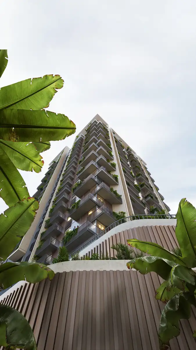 Commissioned by Aldar Properties, Rise by Athlon is a new residential scheme located opposite Global Village, just a 20-minute drive from Downtown Dubai. The development reimagines residential living through the lens of movement and wellness. Occupying a plot area of 2 million sq ft, Rise benefits from the wider Athlon masterplan, which includes a mosque, retail spaces, a community hall, school, sports courts, rock climbing facilities, and other amenities that establish the development as a vibrant social and cultural hub. It is directly connected to a planned metro station at the north-west corner of the site.