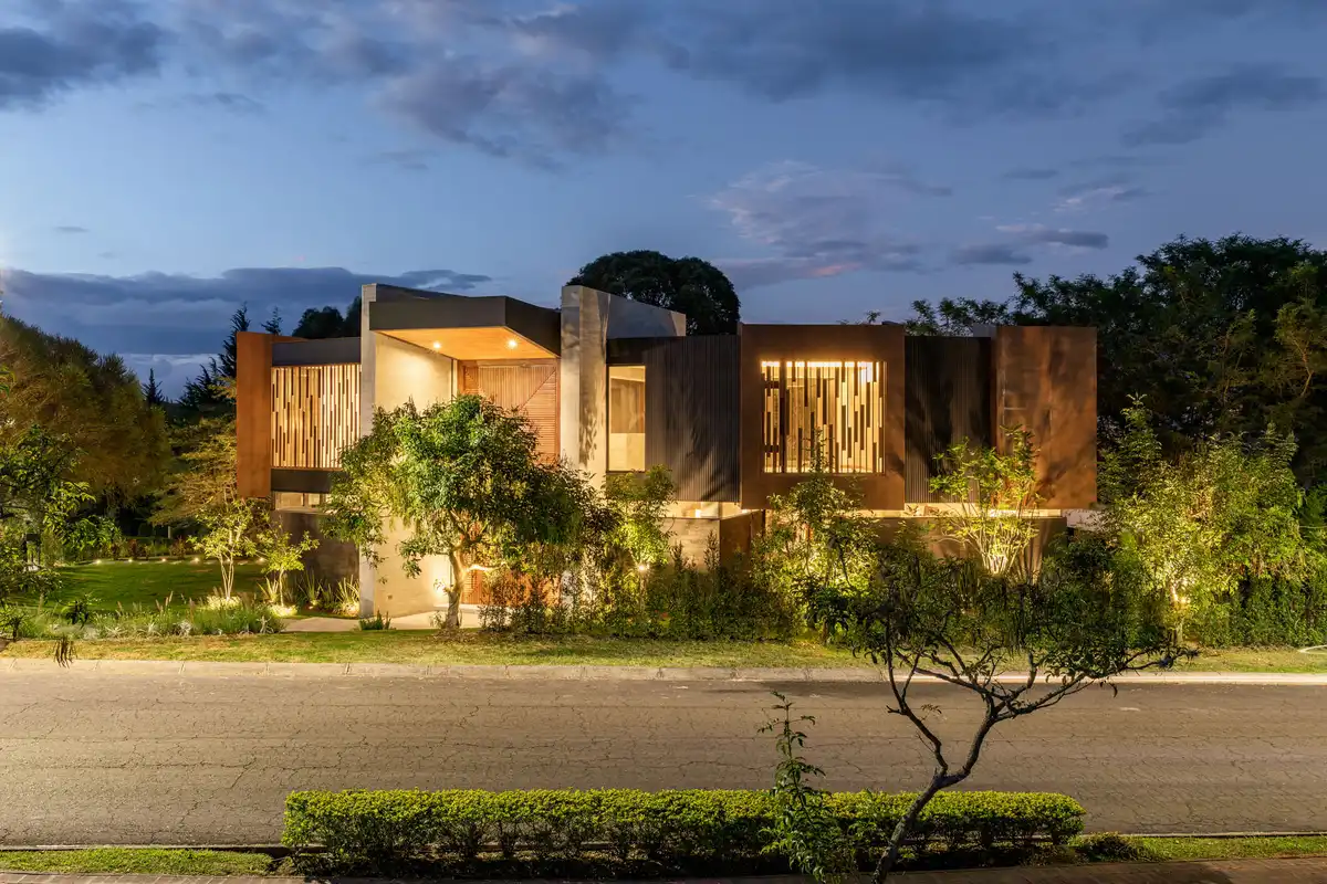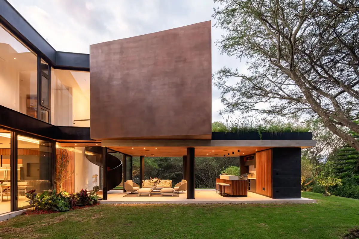 Metal is the primary material of The Vortex House, applied in both structural and decorative contexts. Through a combination of techniques and finishes, including the controlled oxidation and black corrugated metal, the design creates a dynamic interplay between form and material. The floating volumes, the façade’s spatial sequence, and the detailed craftsmanship of elements like the staircases and water mirrors, result in a refined architectural response that both respects the environment and meets the occupants’ needs, with metal taking center stage as the defining feature of the home.