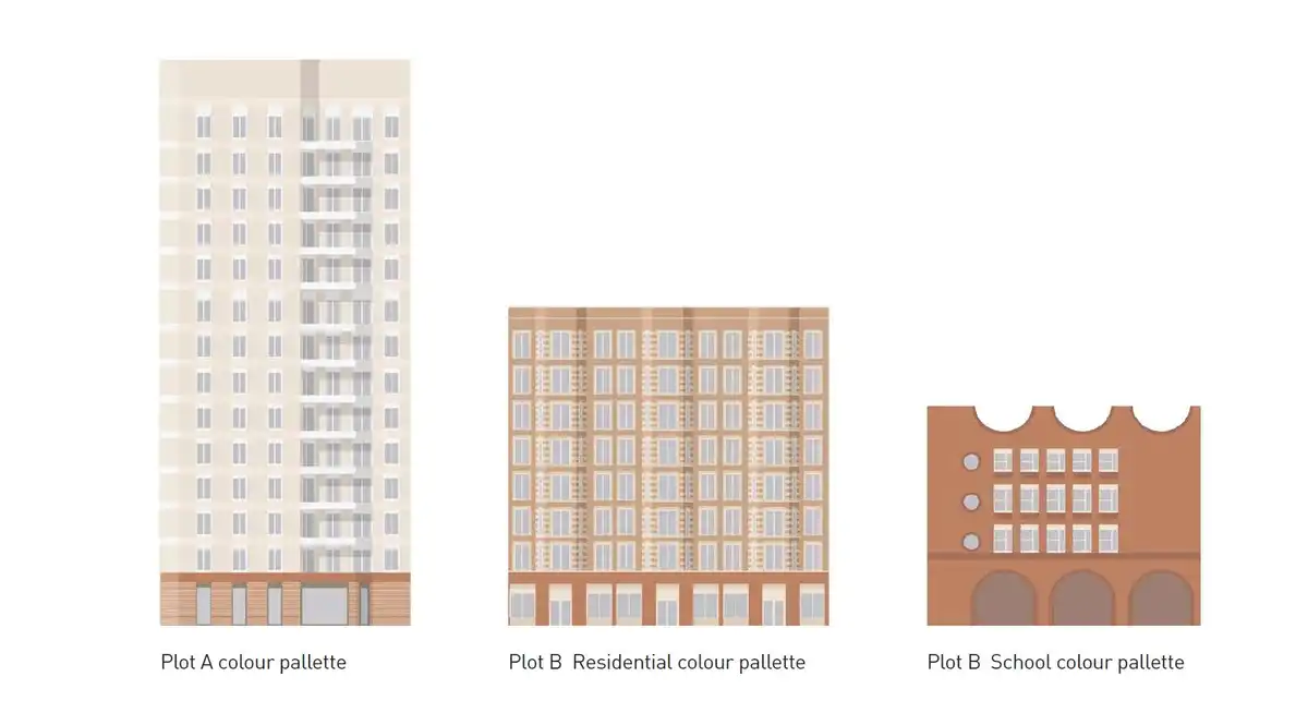 The Maccreanor Lavington designed plot comprises a 9-storey building with 154 new homes – a mix of social rent, shared ownership, and private sale – and 800 sqm of commercial space. The new homes sit alongside a stand-alone multi-storey 3-form entry primary school with 47 place nursery and specialist unit for SEND pupils based around a west-facing playground. The school features outdoor play space on every level. The first residential phase will provide 35% affordable housing overall.