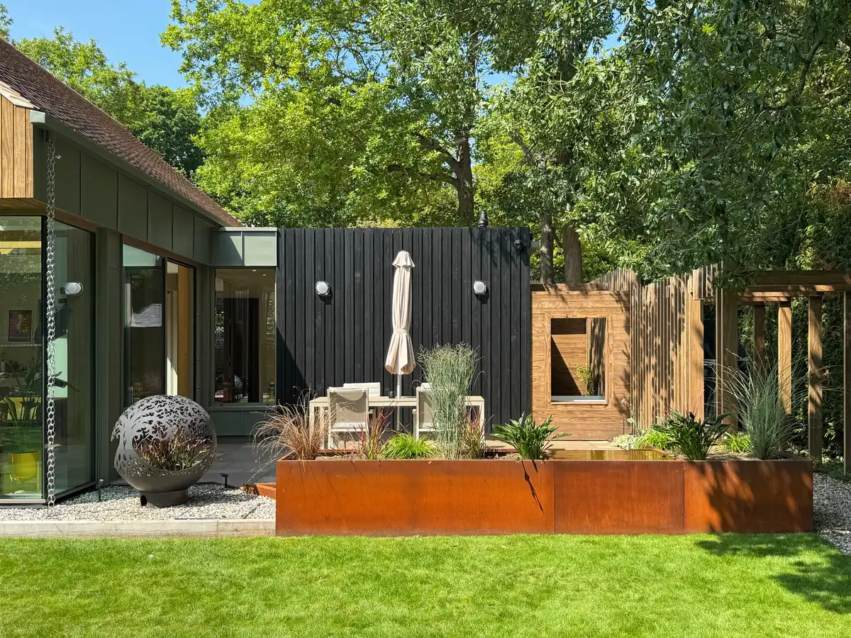 Project Name: Cedar-Clad Extension and Garden Studio, Colchester