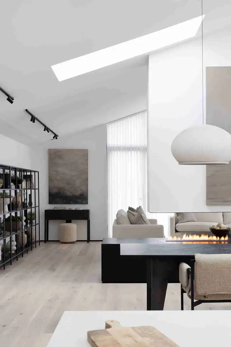 The structurally-insulated panels by SIPs Eco consist of a foam core sandwiched between two rigid facings, which reduce embodied carbon by 40% compared to traditional masonry construction. SIPs also create an unbroken, thermally-efficient envelope around each dwelling, enhancing the performance of green technologies and minimising cold bridging. Each home is also cocooned in insulation, fortified by an internal wrap vapour control layer and an air seal that ensures airtightness. The homes will also feature fireplaces that burn bioethanol—a renewable energy source derived from food.