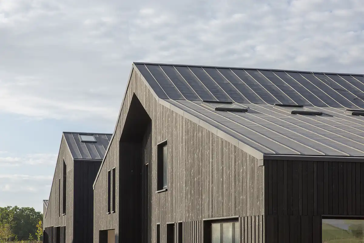 The development has adopted a high standard of environmental design, utilising special fabrics, plant enhancements and green technology to maximise energy savings. The buildings were constructed using structural insulated panels (SIPs) with a mixture of glulam and steel beams, together with low-carbon concrete. Former concrete slabs and pathways were removed and crushed for use as hardcore, helping ensure a build with very low embodied carbon.